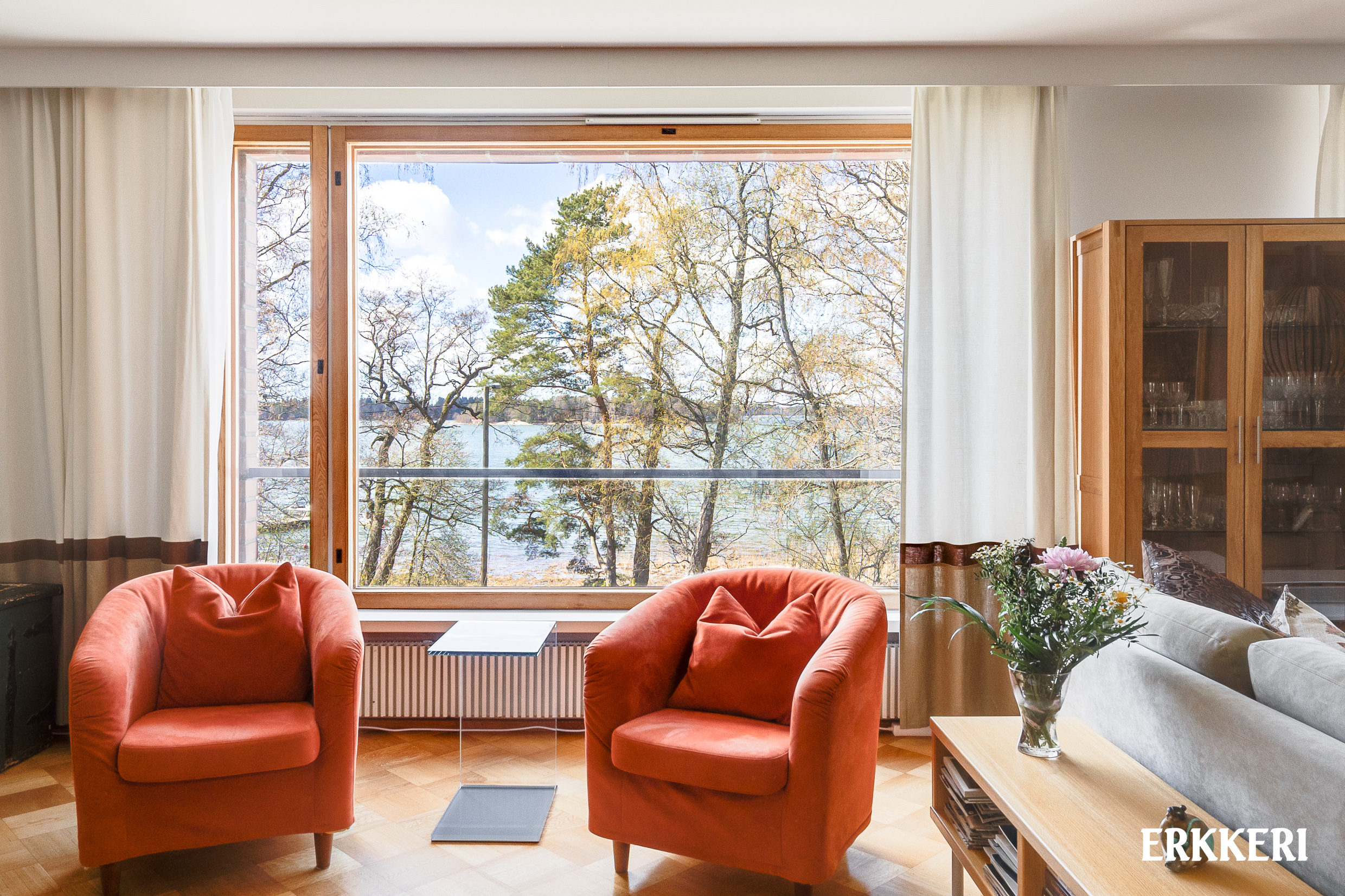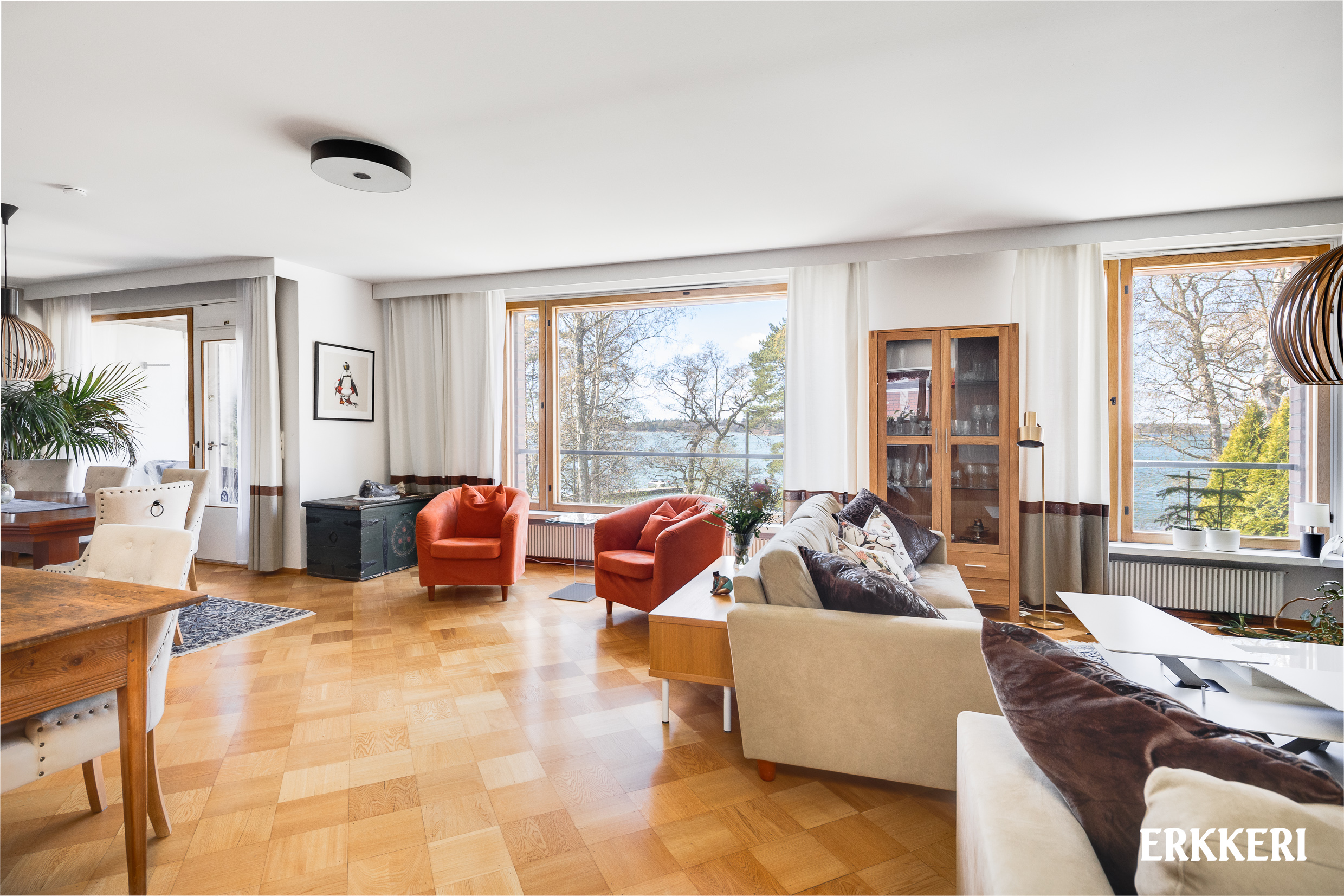 Keittiö on uusittu vuonna 2018 ja kylpyhuone-, sauna- sekä wc-tilat vuonna 2013, kokonaisuus on nykyaikainen ja hyväkuntoinen. Vaaleat pinnat, laadukkaat materiaalivalinnat sekä suuret ikkunat tuovat tilaan ilmavuutta ja viihtyisyyttä. Hienosta merinäköalasta voit nauttia etenkin talvikaudesta.