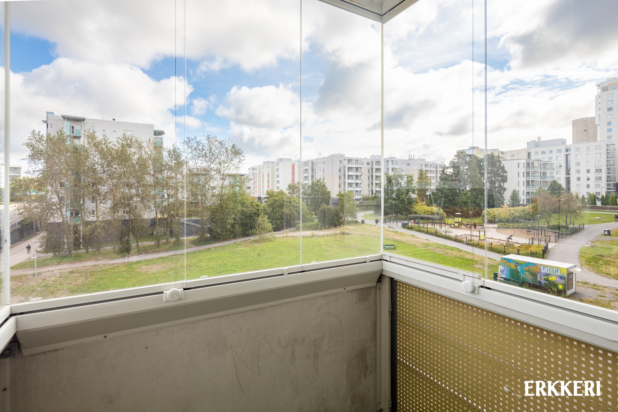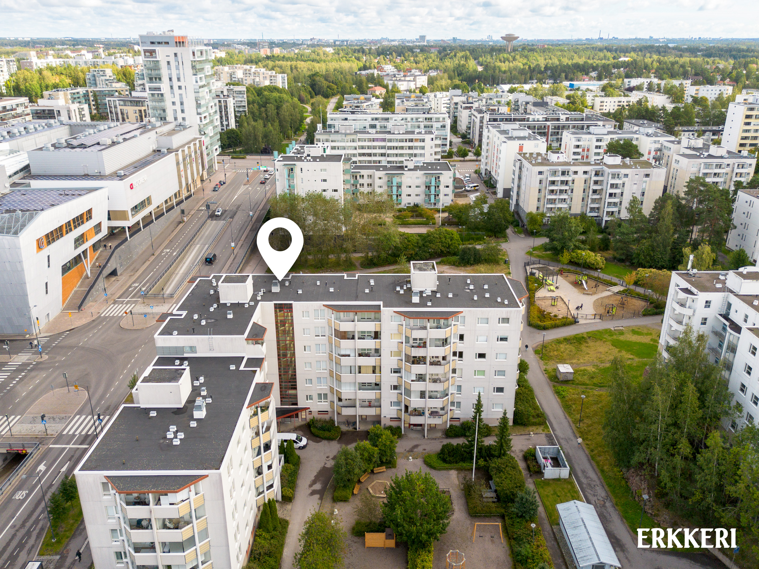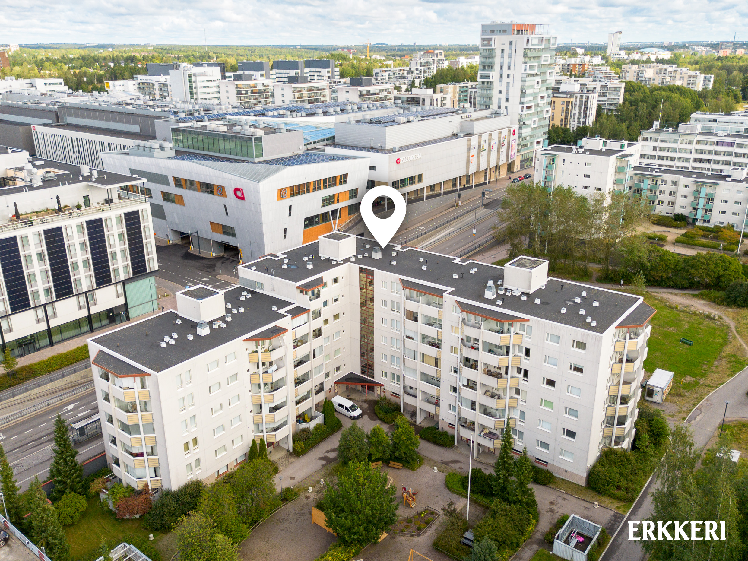 Viihtyisä kaksio kauppakeskus Iso-Omenan välittömässä läheisyydessä. Vaaleat seinäpinnat tuovat avaruutta asunnolle. Lasitettu parveke avautuu Iso-Omenan suuntaan sekä oma sauna tuo luksusta kylmiin iltoihin. Kivat avarat näkymät. Heti vapaa.