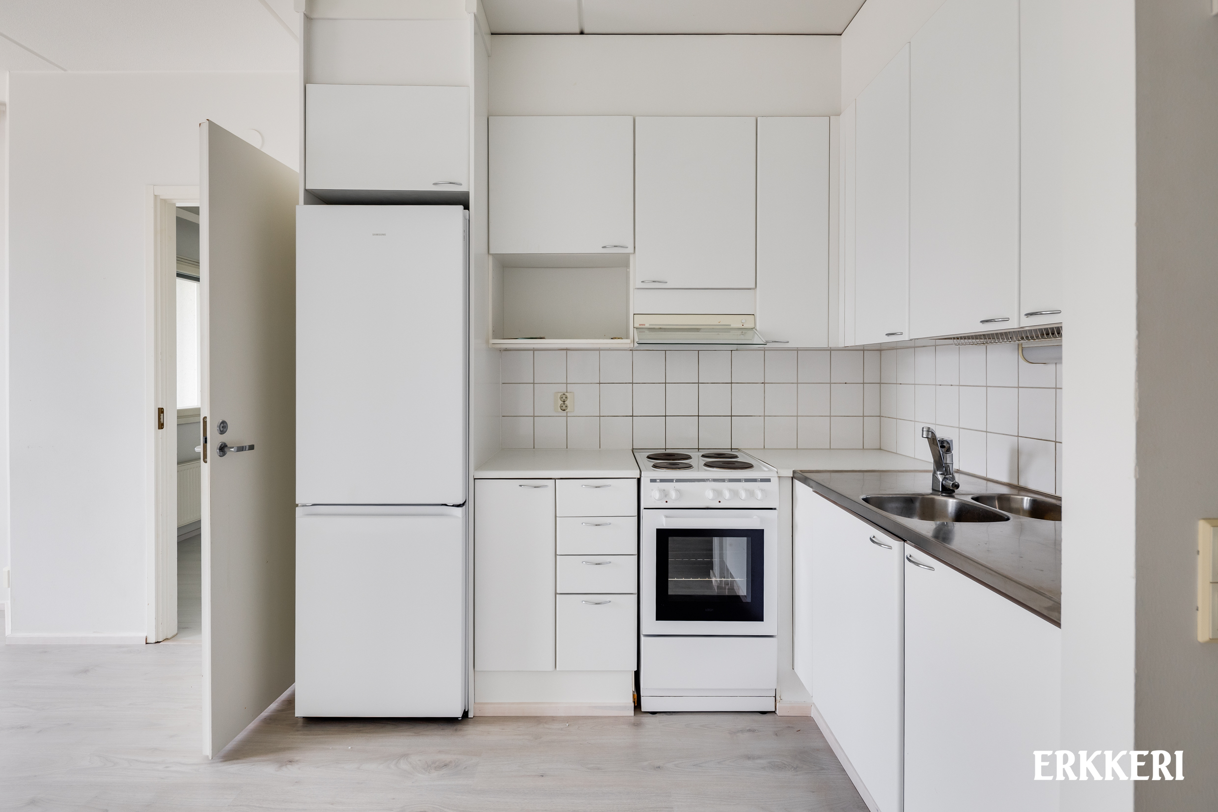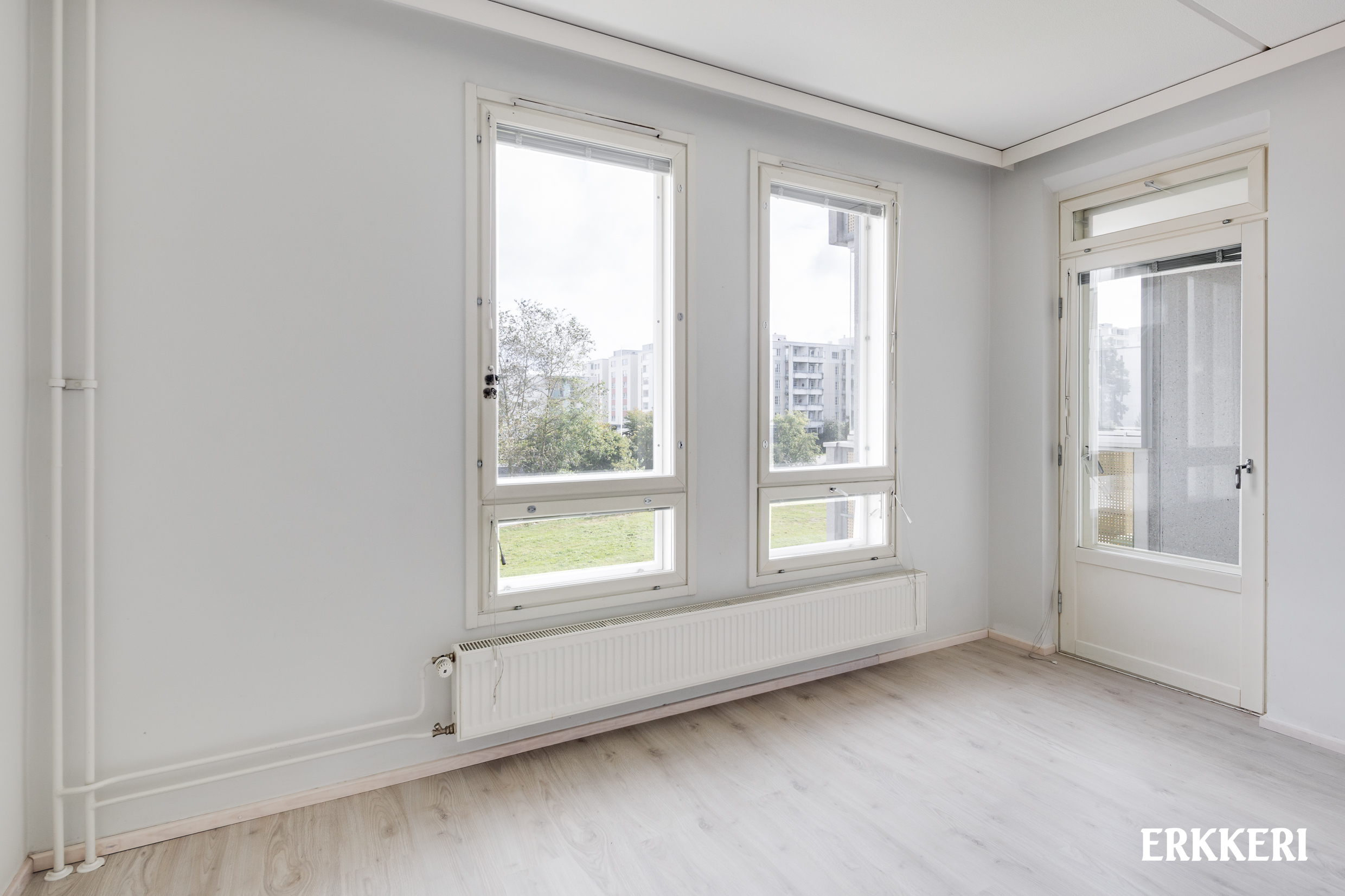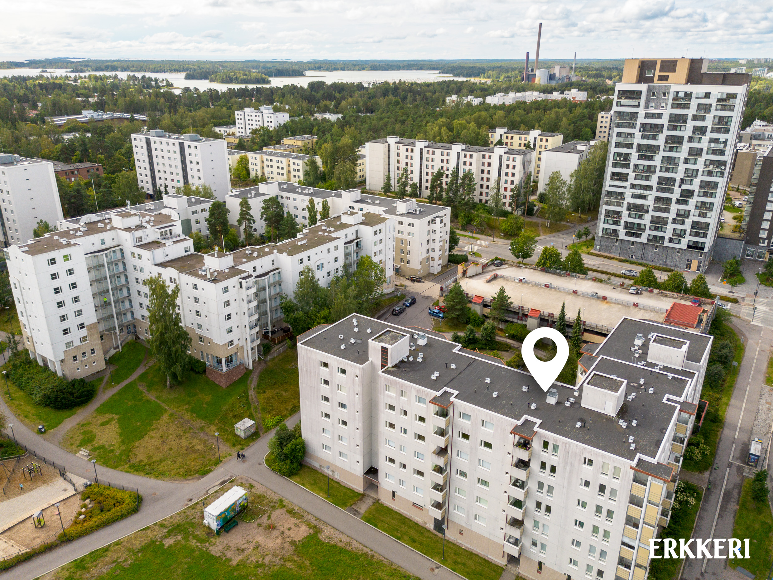 Viihtyisä kaksio kauppakeskus Iso-Omenan välittömässä läheisyydessä. Vaaleat seinäpinnat tuovat avaruutta asunnolle. Lasitettu parveke avautuu Iso-Omenan suuntaan sekä oma sauna tuo luksusta kylmiin iltoihin. Kivat avarat näkymät. Heti vapaa.