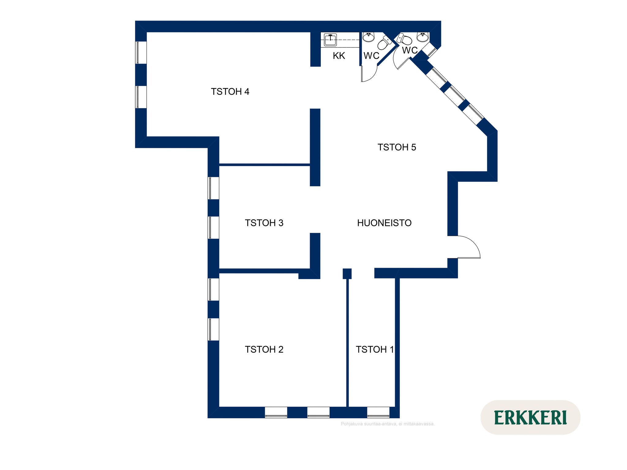 | Huoneiston kokoonpano | Toimisto, 5h, kk, 2wc:tä |
