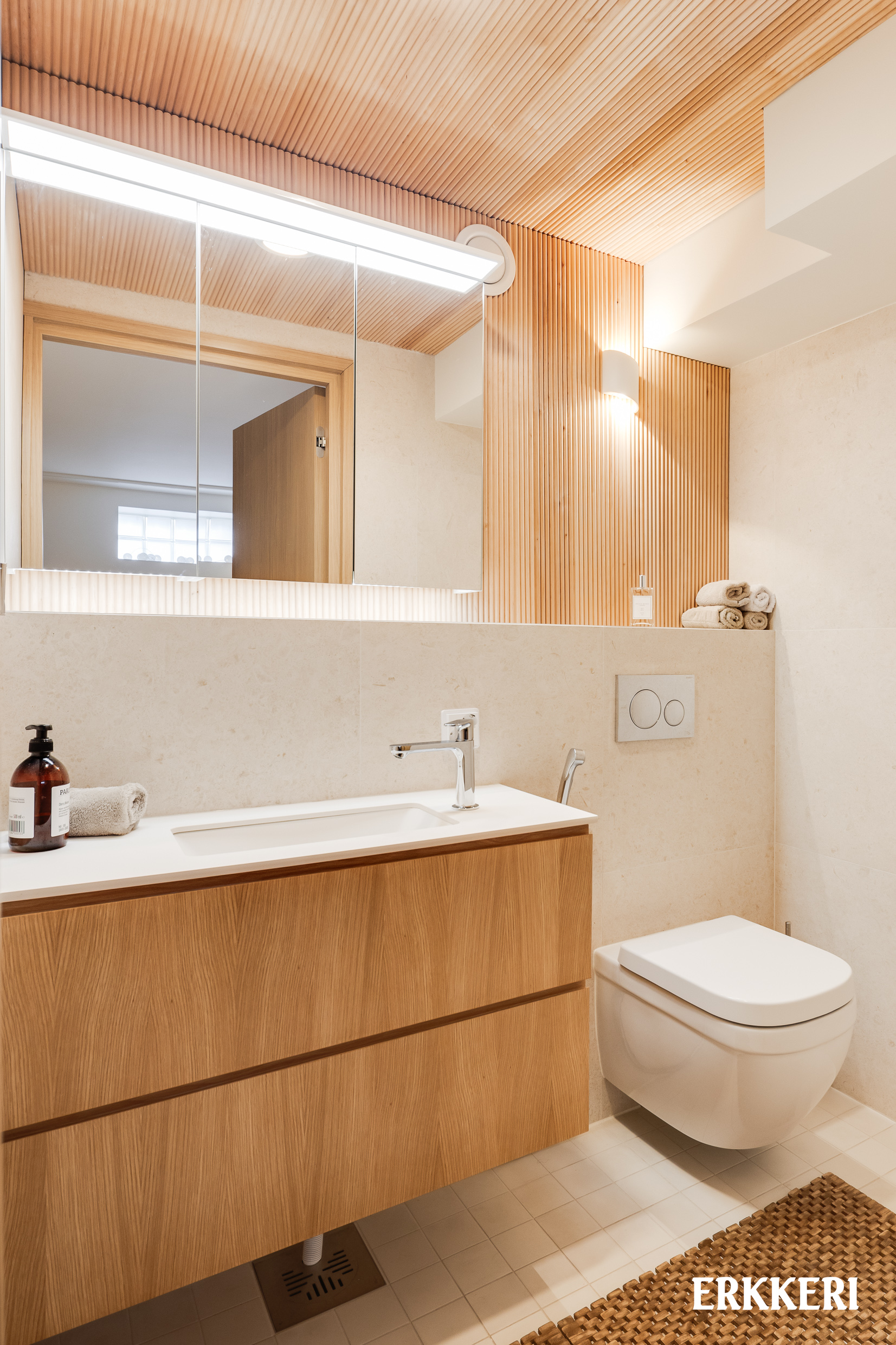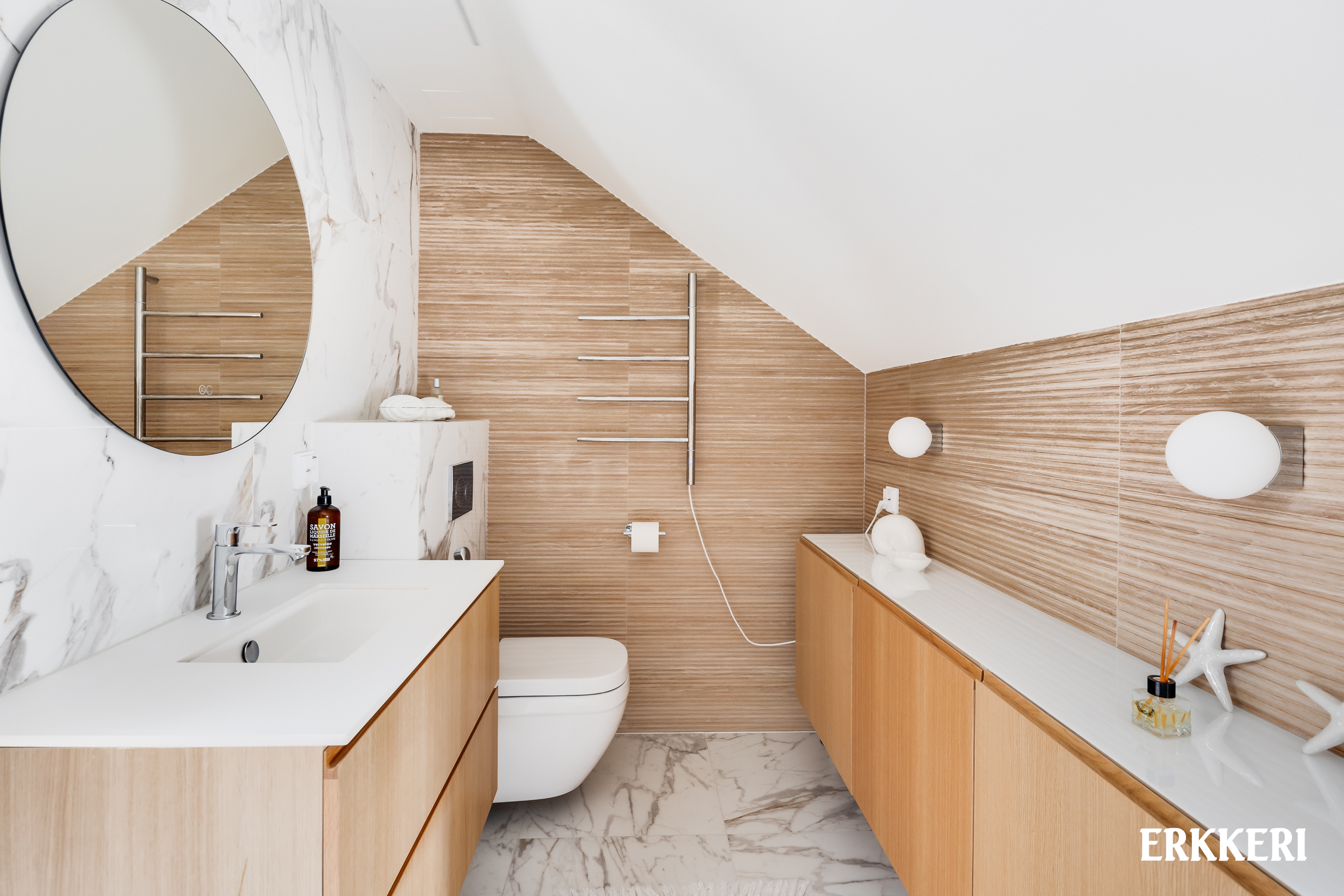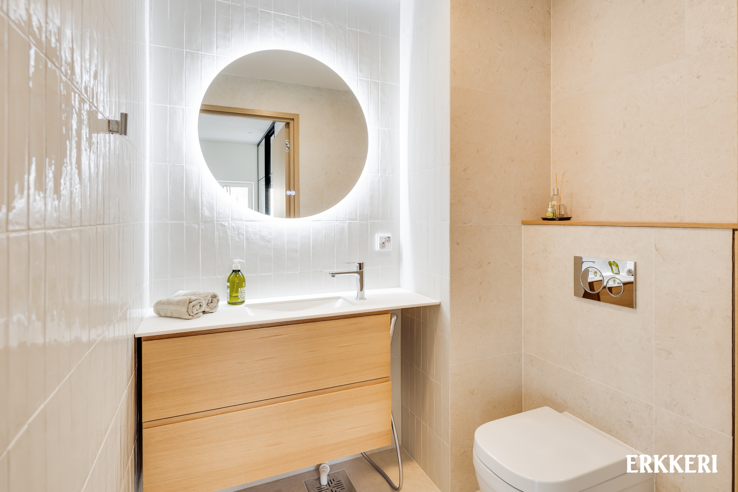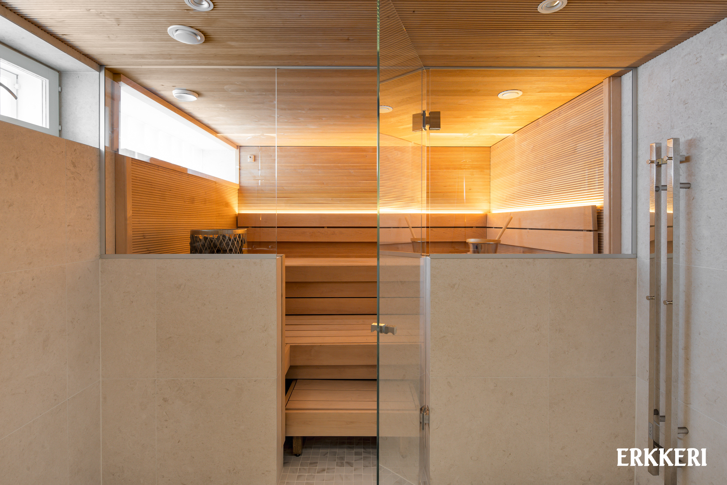 Tervetuloa tutustumaan tähän uutuutta hohtavaan, unelmien kotiin. Astuessasi tähän asuntoon sisääntulokerroksesta, vastassasi on valoisa ja avara olohuone-ruokailutila. Suurista ikkunoista tulvii luonnonvaloa sisään, ja hämärän tullen täällä nautitaan oman takan tunnelmasta. Upea kalanruotoparketti johdattaa sinut eleganttiin mittatilaustyönä tehtyyn keittiöön. Tyylikkäät tammiviiluiset kaapistot sopivat takuulla vaativammankin makuun, sekä tilan täydentävät kauniit kaakelit, kivitasot sekä laadukkaat kodinkoneet. Suuresta ikkunasta aukeaa vehreät näkymät omalle pihalle. Sinne käynti on keittiön vierestä, terassin kautta. Harkittu ja hienostunut tyyli jatkuu myös yläkerrassa, josta löytyy asunnon tilavat makuuhuoneet. Molemmissa on hyvin säilytystilaa sekä omat ranskalaiset parvekkeet. Kiireistä arkea tässä kodissa helpottaa kaksi kylpyhuonetta ja erillinen wc. Toinen kylpyhuoneista on 2. kerroksessa, ja toinen kellarikerroksesta, upean saunaosaston yhteydestä. Tämän saunan löylyissä kelpaa rentoutua pitkän päivän päätteeksi! Kellarikerroksessa on myös pukuhuone, tilava kodinhoitohuone, varastotila sekä tekninen tila/harrastehuone, joka sopii hyvin myös kolmanneksi makuuhuoneeksi.