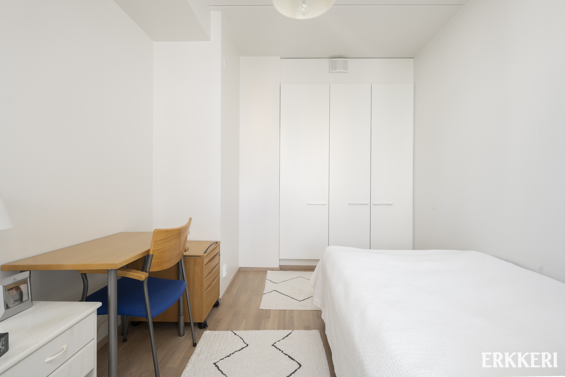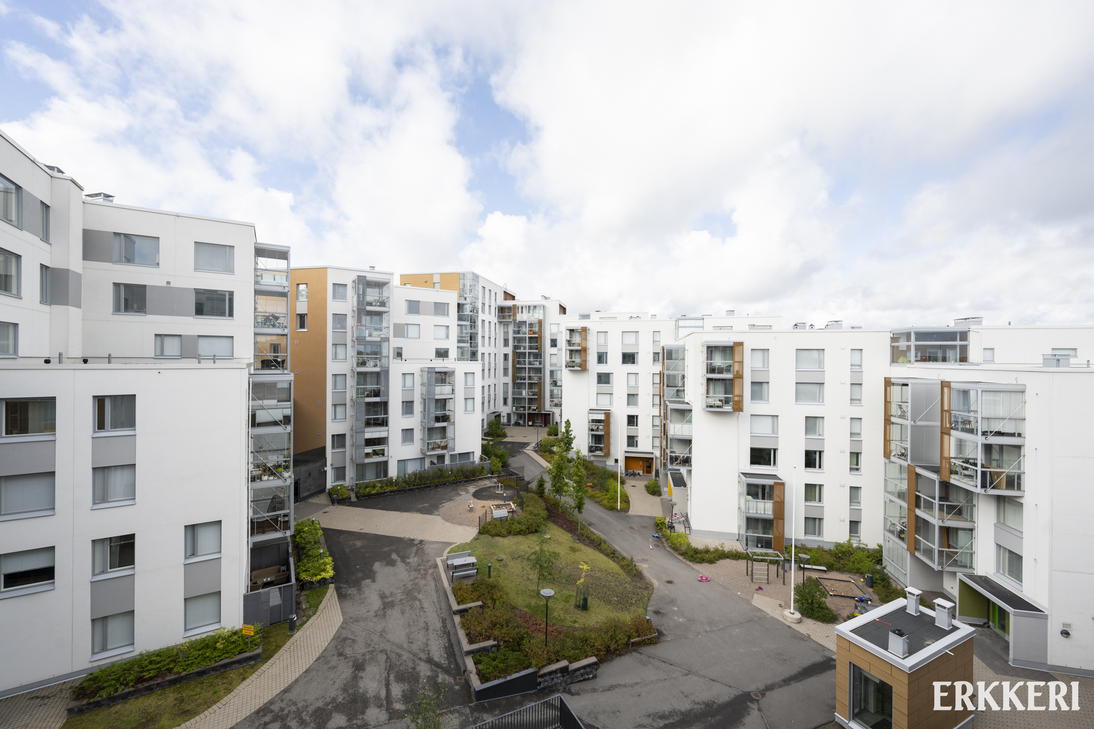 Tässä kodissa yhdistyvät avaruus, valo ja modernit mukavuudet. Vaaleat pinnat ja parkettilattia korostavat tilojen avaruutta, ja avokeittiö yhdistyy luontevasti tilavaan olohuoneeseen, jossa on loistavasti tilaa ruokapöydälle ja yhdessäololle. Makuuhuoneesta on käynti lasitetulle parvekkeelle – oma rauha ja rentoutumishetket odottavat.