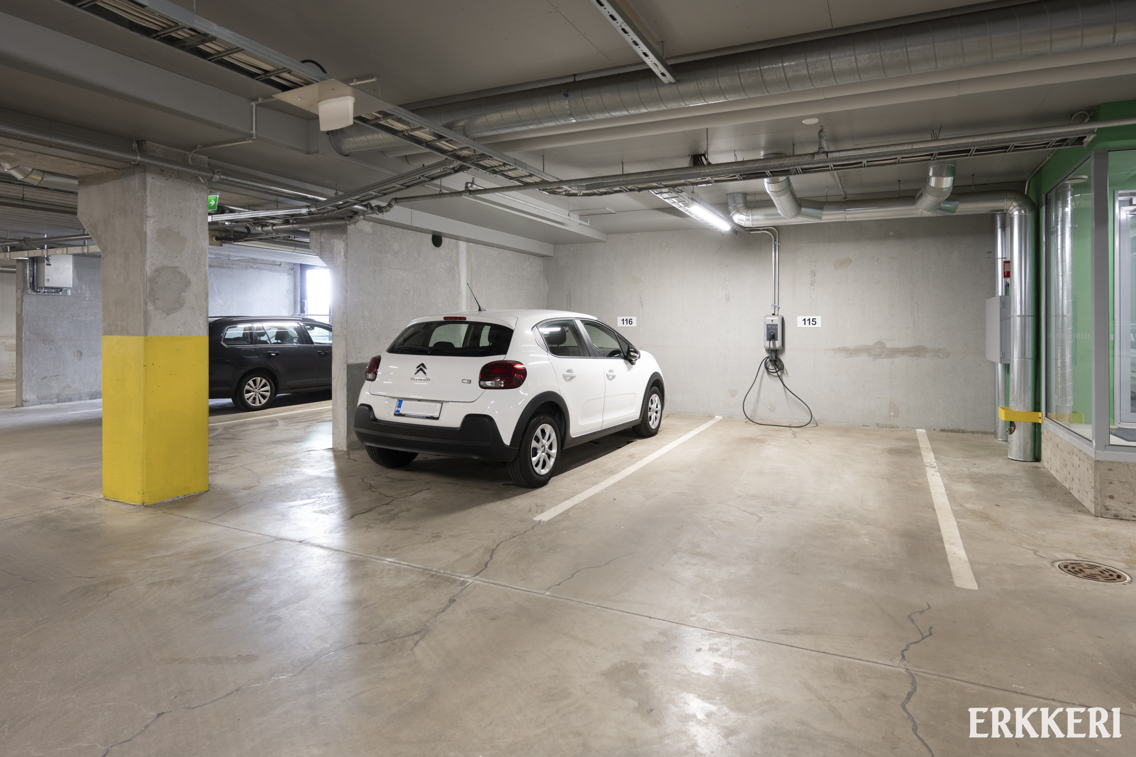 Vuonna 2017 valmistuneessa talossa arki sujuu helposti. Asukkaiden käytössä on kuntosali ja saunatilat, ja autohalliin pääsee kätevästi suoraan hissillä. Mahdollisuus autohallipaikkaan (27 000 €). Lisäksi taloyhtiö sijaitsee omalla tontilla.