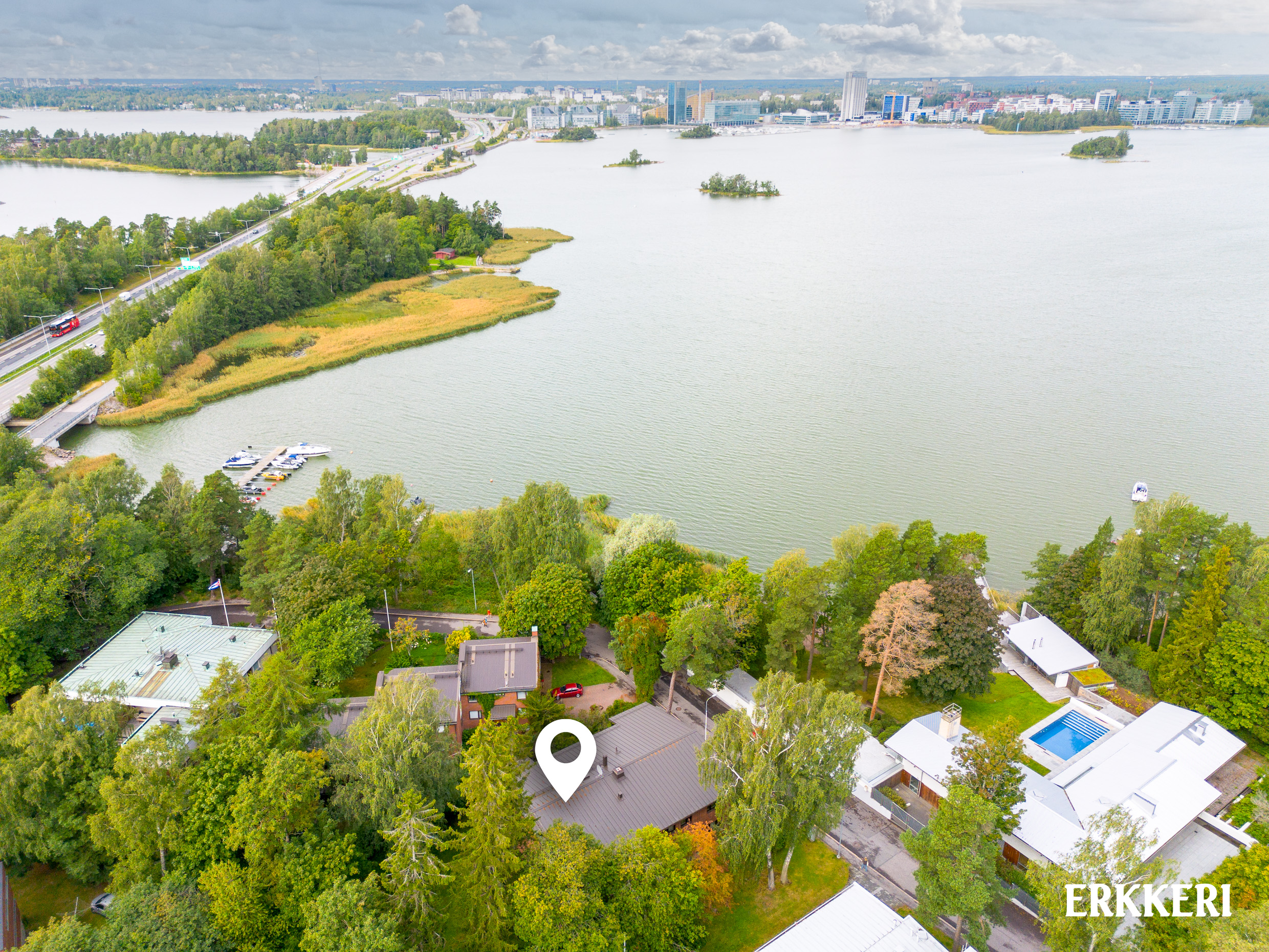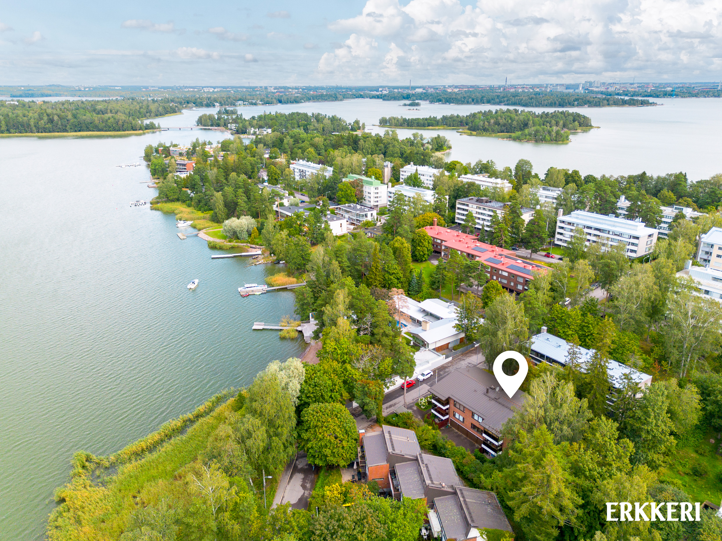 Useampi venekerho kilometrin sisällä, Lauttasaaren urheilupuisto kuntoportaineen, tennis- ja padelkenttineen sekä lähikauppa lyhyen kävelymatkan päässä.