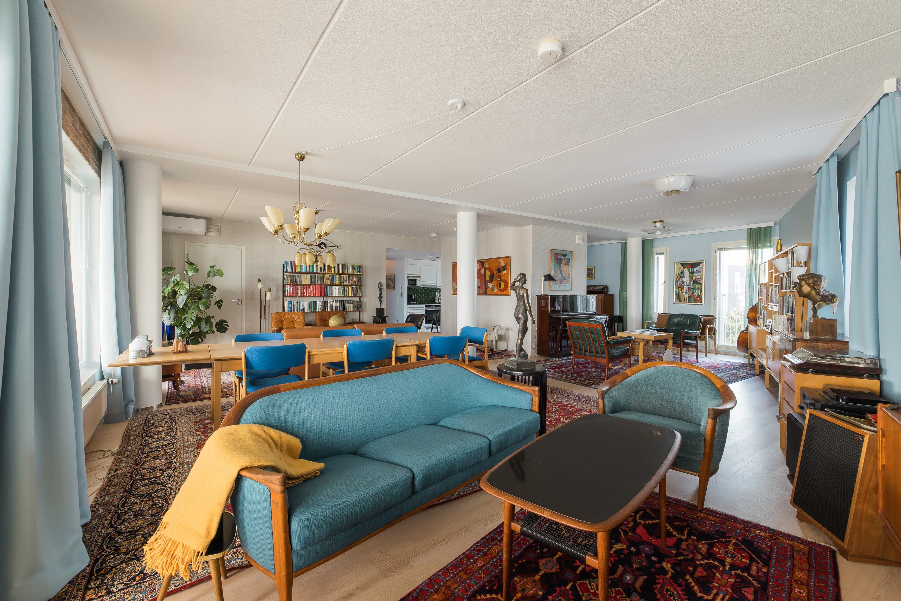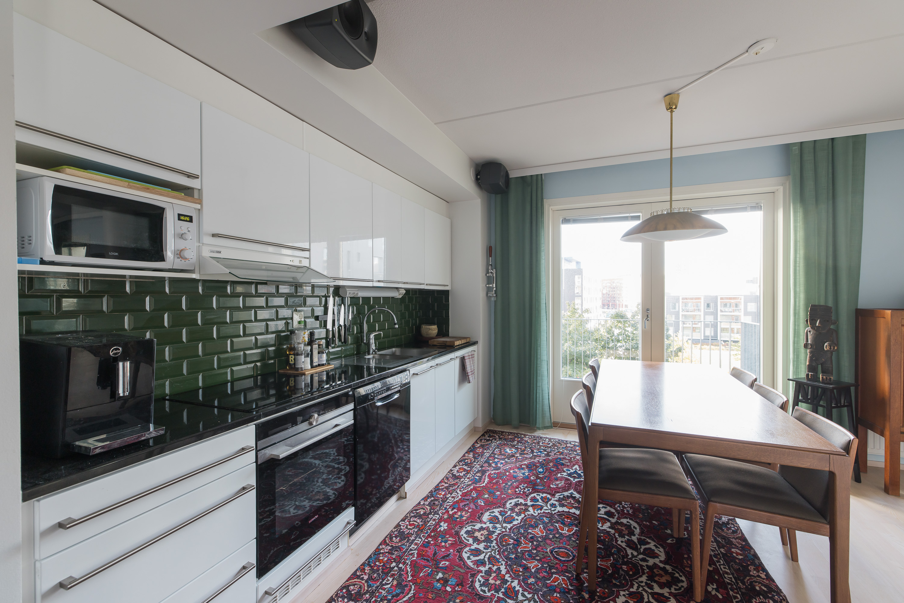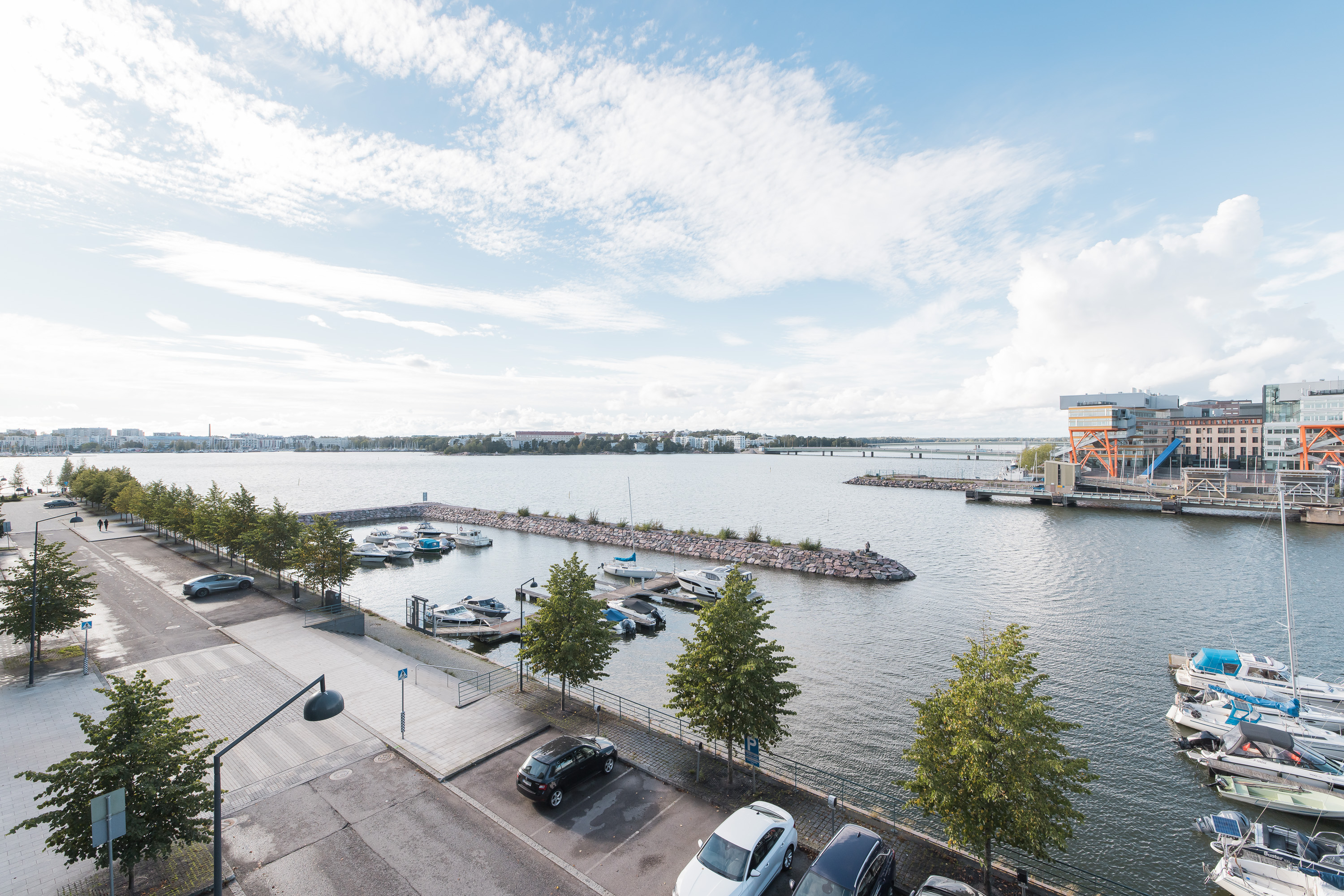 4. kerroksen todella korkeatasoinen ja personaallisesti sisustettu päätyhuoneisto. Huoneistossa kaksi makuuhuonetta, iso kylpyhuone omalla saunalla, erillinen wc, erittäin hyvin varusteltu avokeittiö sekä poikkeuksellisen hulppea ja tilava olohuone. Huoneiston ikkunat kolmeen eri ilmansuuntaan. Valtava lasitettu parveke pohjoiseen. Huoneisto vuokrataan kuvissa näkyvillä kalusteilla.