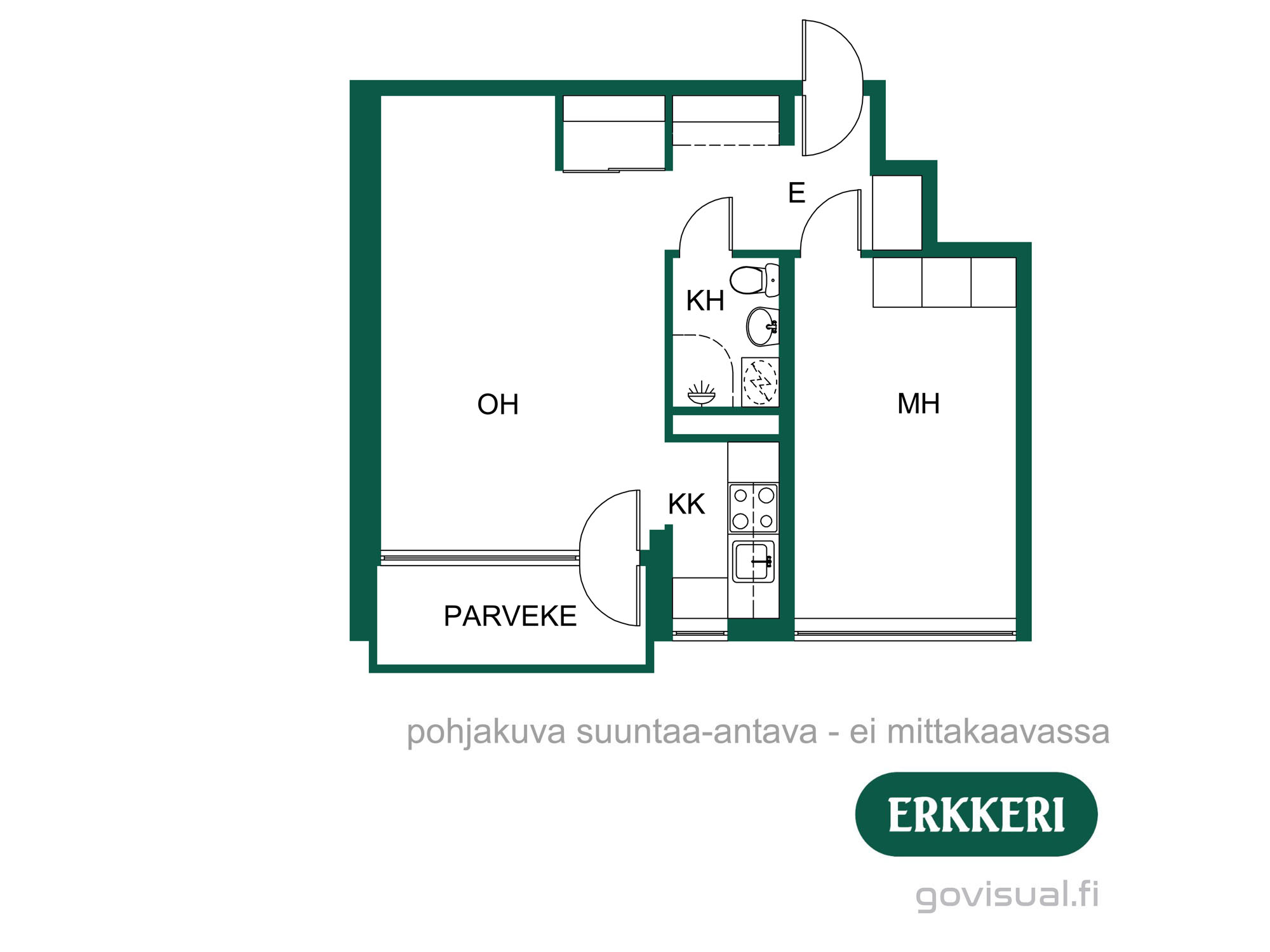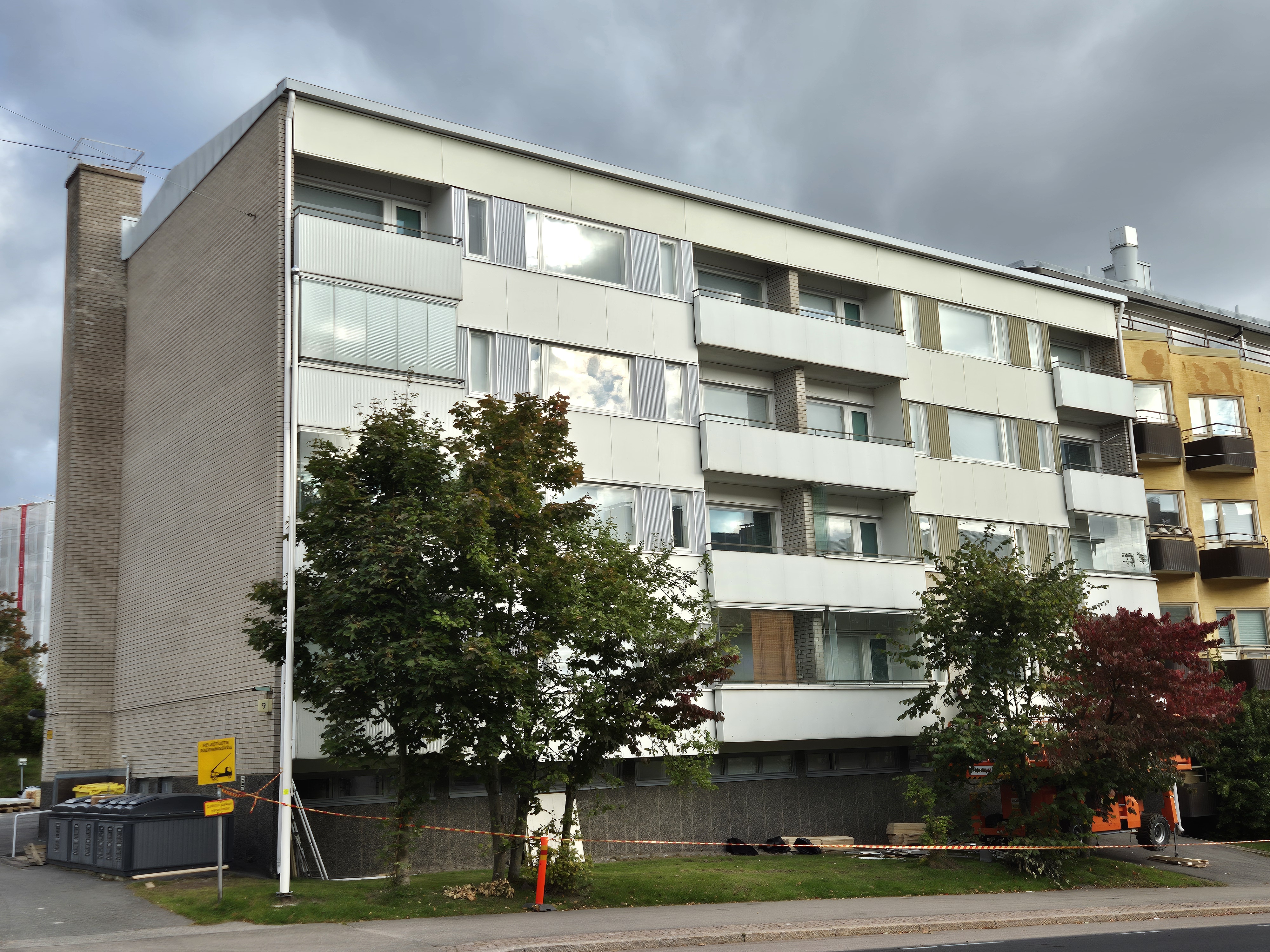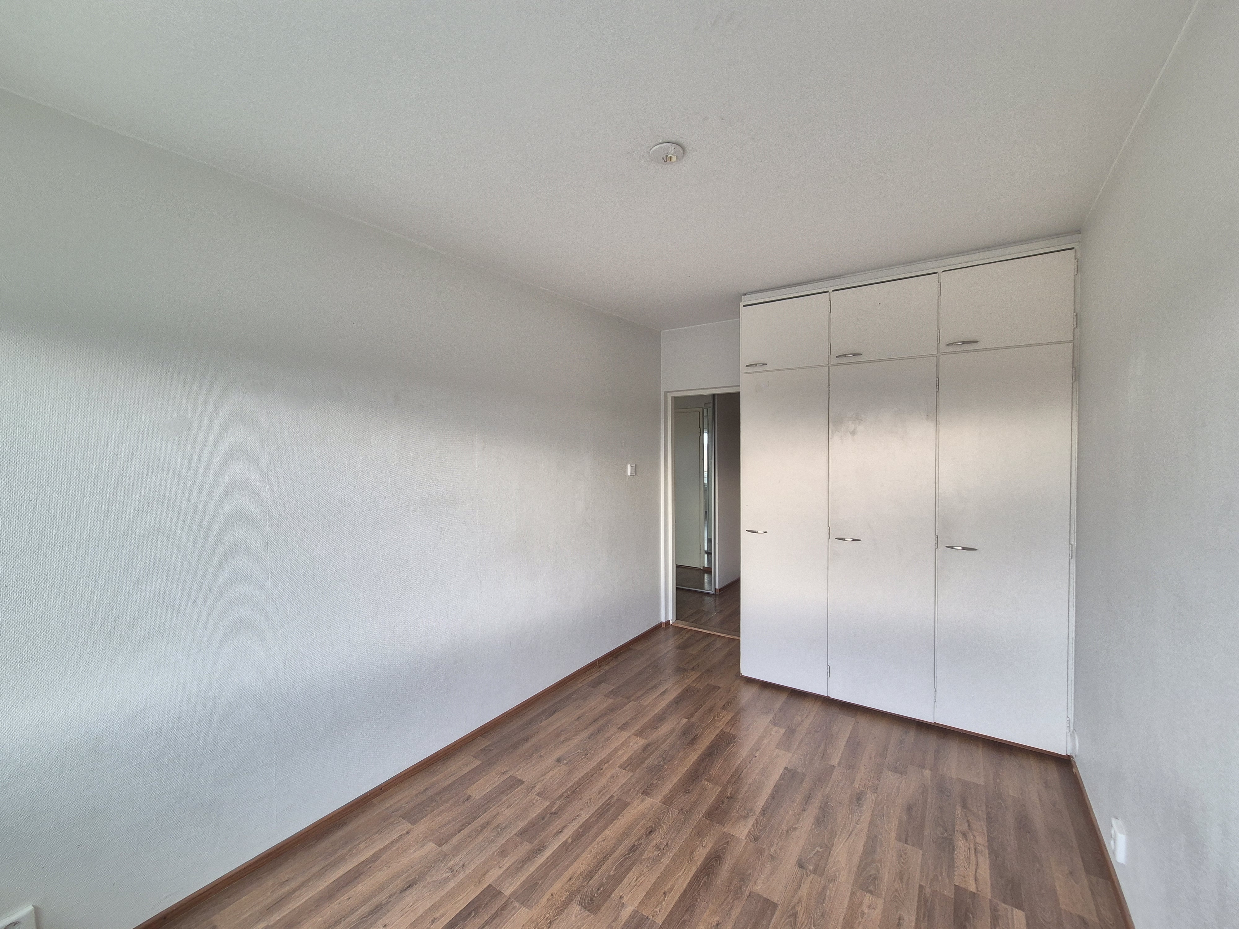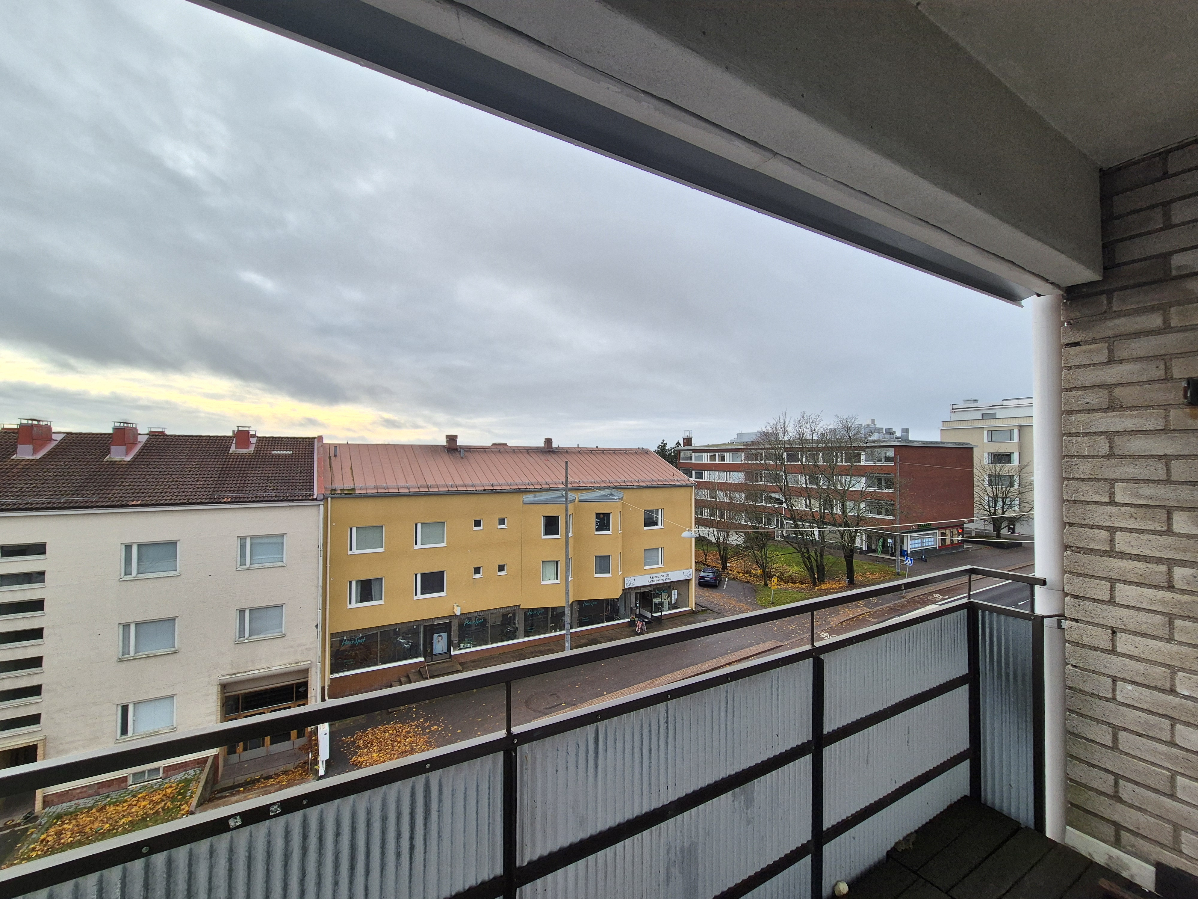 4. kerroksen kompakti kaksio. Yllättävän isot asuinnhuoneet sekä runsaasti säilytystilaa eteisessä sekä makuuhuoneessa. Pieni ikkunallinen keittokomero olohuoneen yhteydessä. Olohuoneesta myös kulku parvekkeelle. Vuonna 2015 uusittu pieni kylpyhuone. Huoneisto on tyydyttävässä kunnossa.