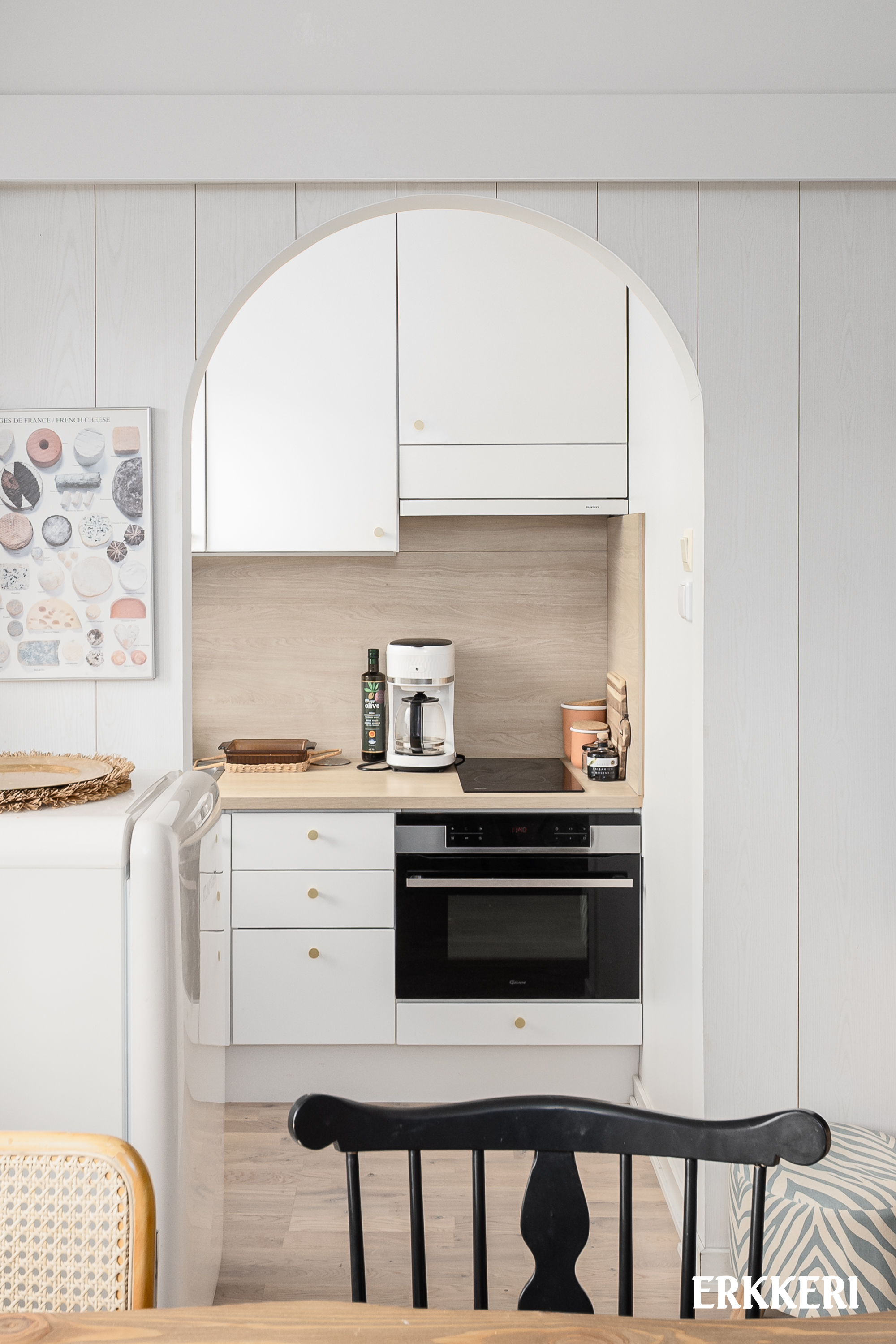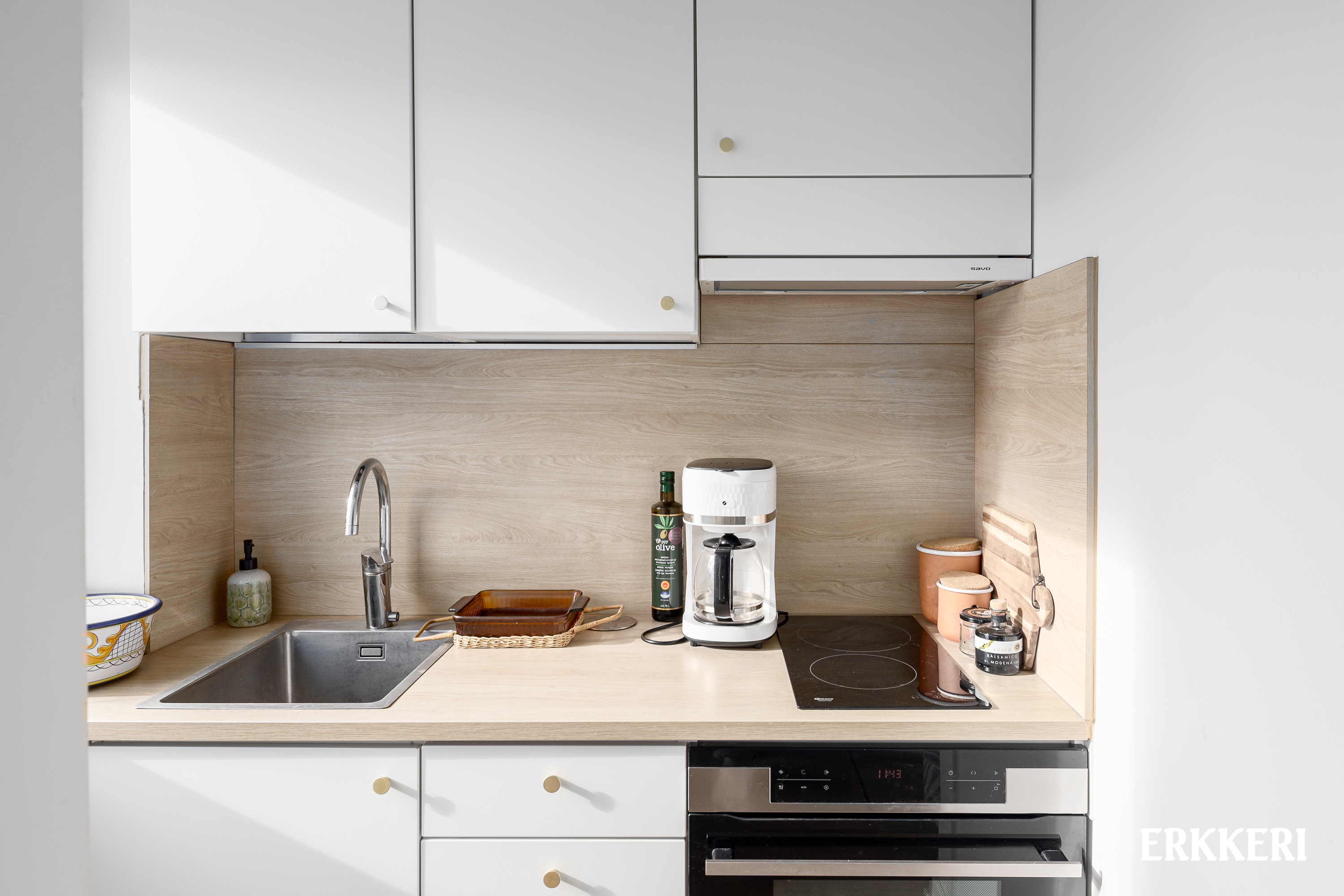Tervetuloa tutustumaan tähän muuttovalmiseen 1H, KK, KPH -asuntoon, joka hurmaa tehokkailla ja hyvin käytetyillä neliöillä. Tämä valoisa koti sijaitsee 3. kerroksessa, ja sen ikkunoista avautuu rauhallinen näkymä, sillä kadun toisella puolella olevassa asuintalossa ei ole ikkunoita kadulle päin.
