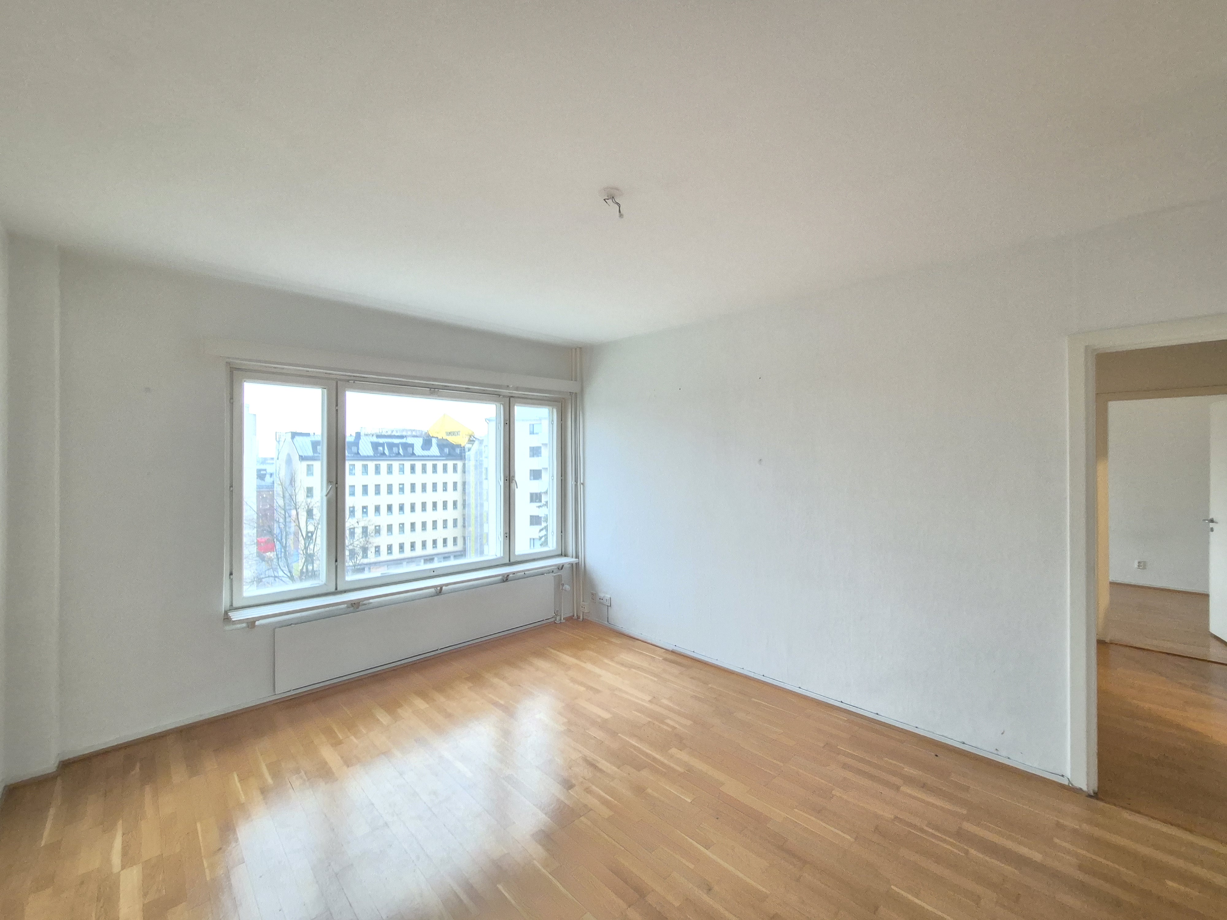 Kuudennen kerroksen tilava kaksio. Hienot kaupunkinäkymät Töölönlahden suuntaan.