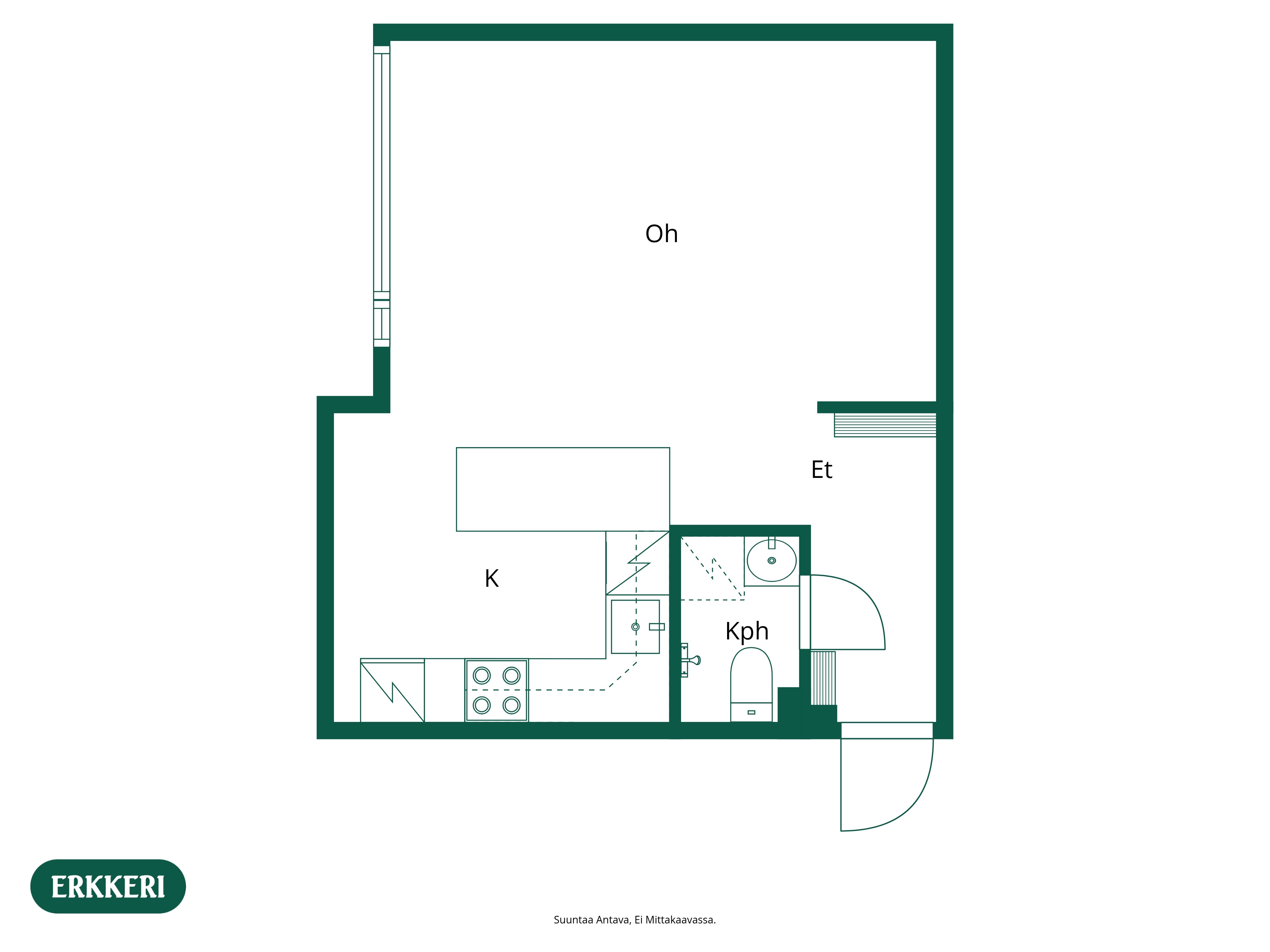 | Huoneiston kokoonpano | 1h+avok+kph |