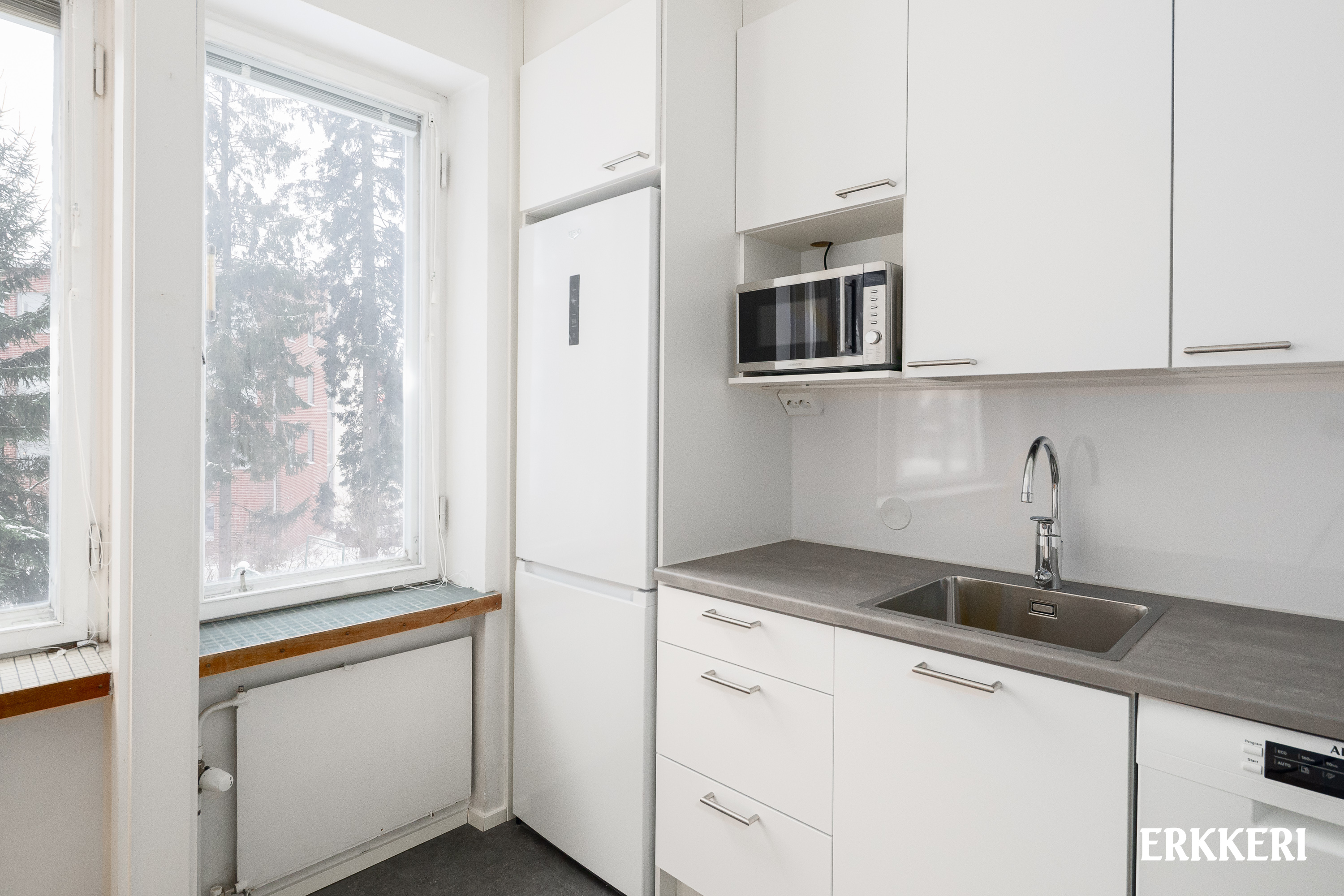 Loistavapohjainen yksiö erinomaisella sijainnilla! Asunnon keittiö on juuri uusittu ja täysin käyttämätön, tarjoten modernit ja toimivat puitteet arkeen. Kylpyhuone on hyvän muotoinen ja neliöihin nähden optimaalisen kokoinen. Säilytystilaa on poikkeuksellisen reilusti, mikä lisää asumismukavuutta ja tekee tilankäytöstä tehokasta.