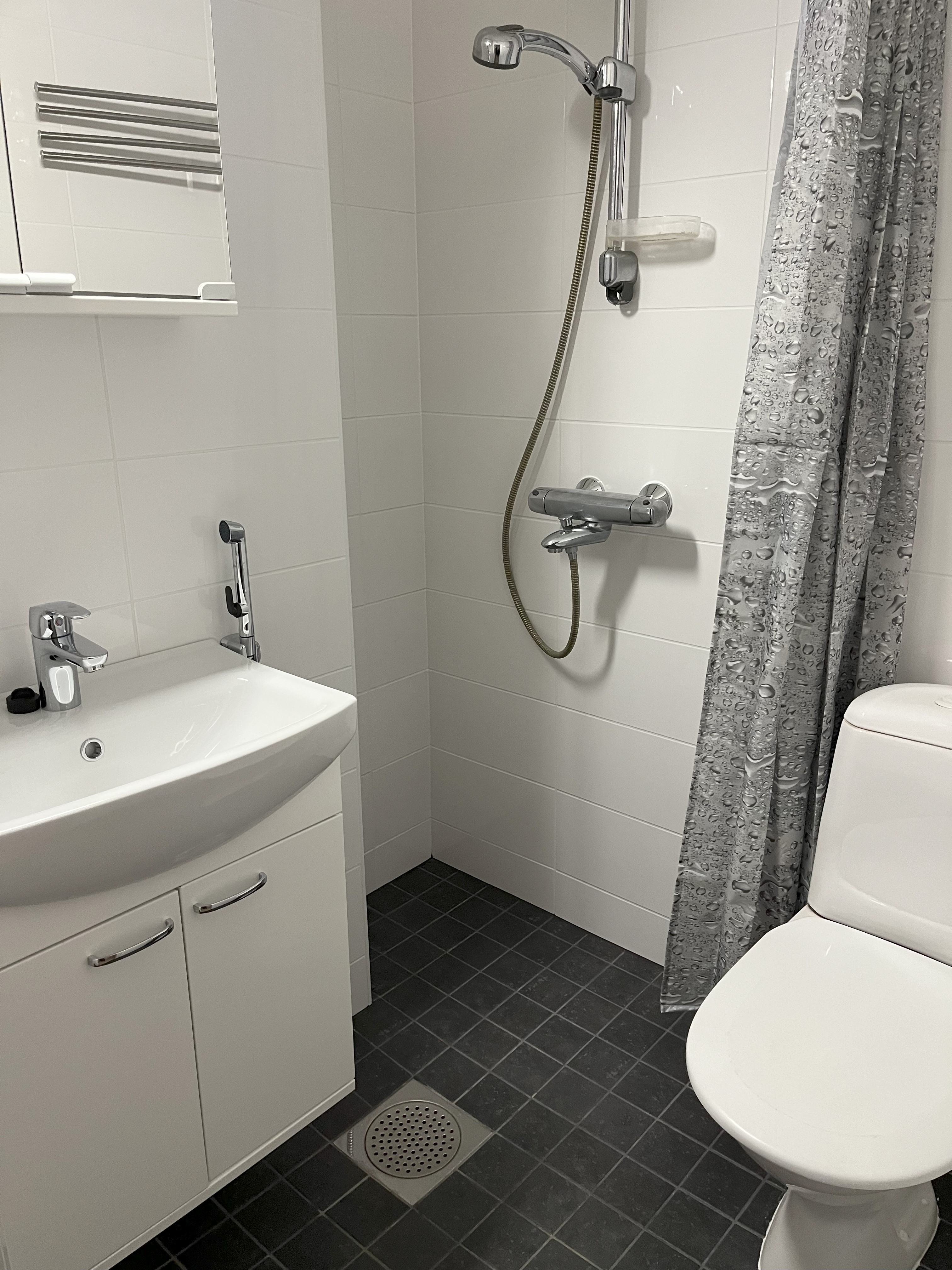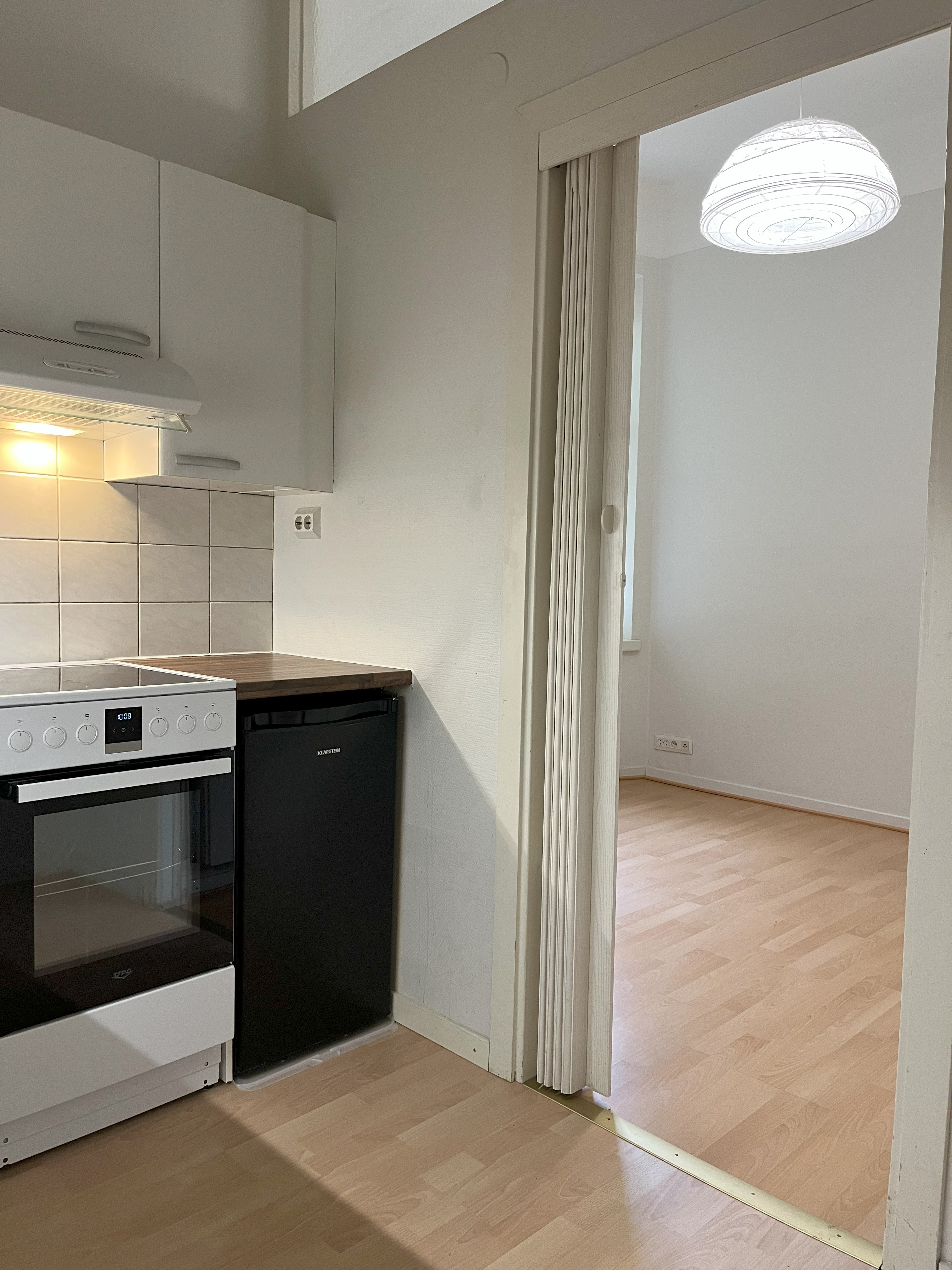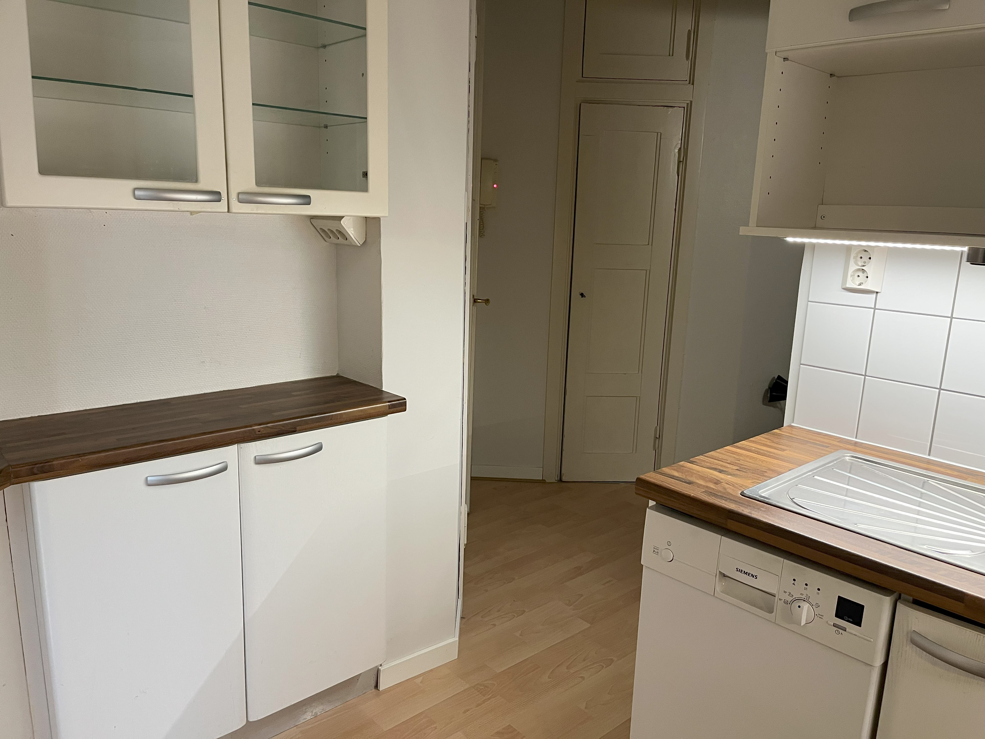 Makuuhuone sijoittuu rauhalliselle sisäpihan puolelle, mikä takaa hyvät yöunet ilman keskustan hälinää. Keittiössä on runsaasti säilytys- ja laskutilaa sekä astianpesukone, joka helpottaa arjen sujuvuutta.