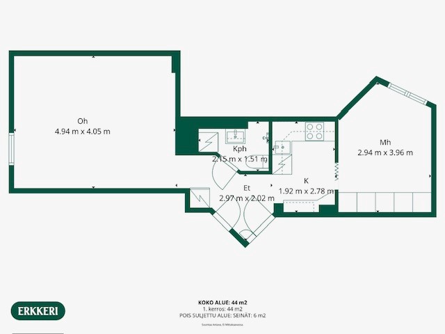Tilava olohuone on helppo kalustaa monenlaisiin tarpeisiin, ja kaunis erkkeri-ikkuna syvine ikkunalautoineen tuo tilaan runsaasti luonnonvaloa ja persoonallista ilmettä. Kylpyhuoneessa on hyvin tilaa pyykinpesukoneelle.