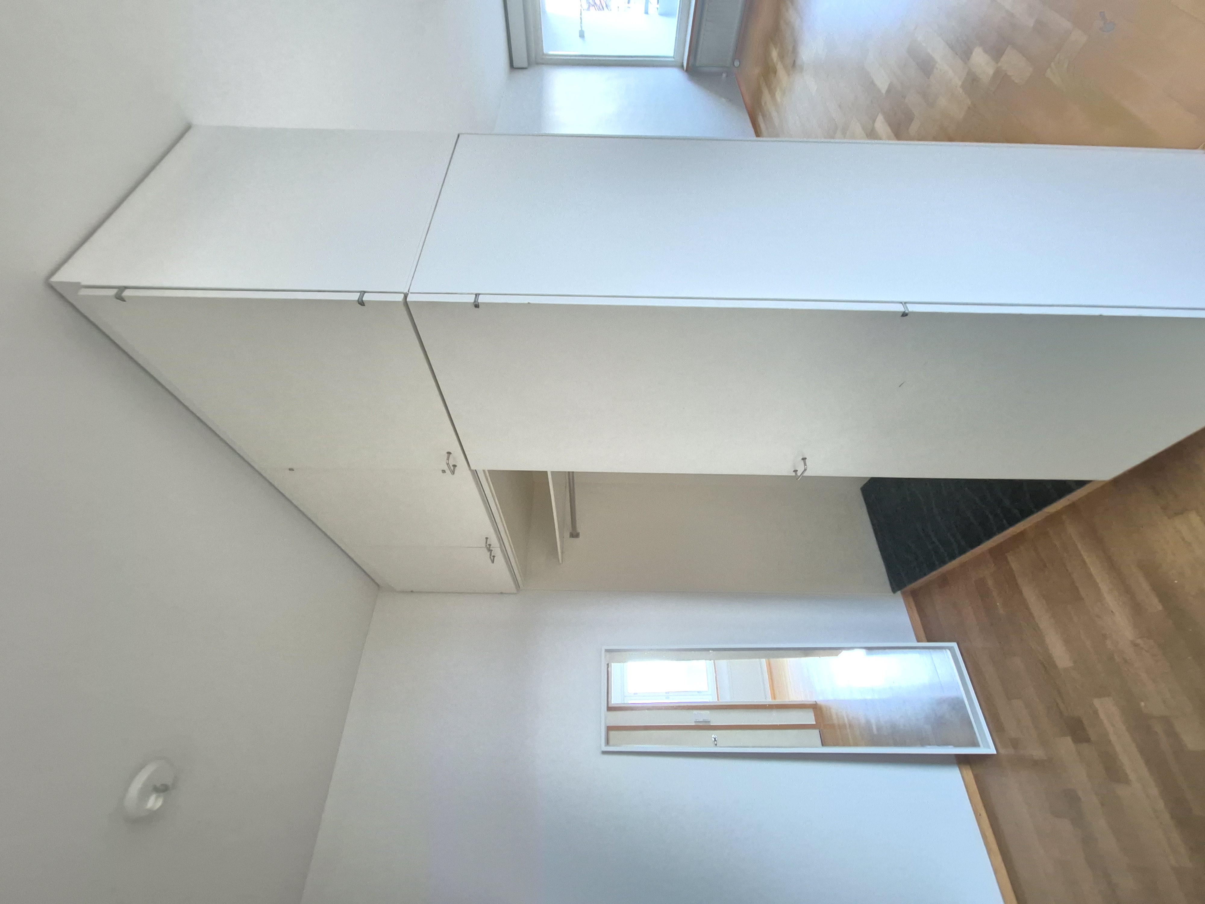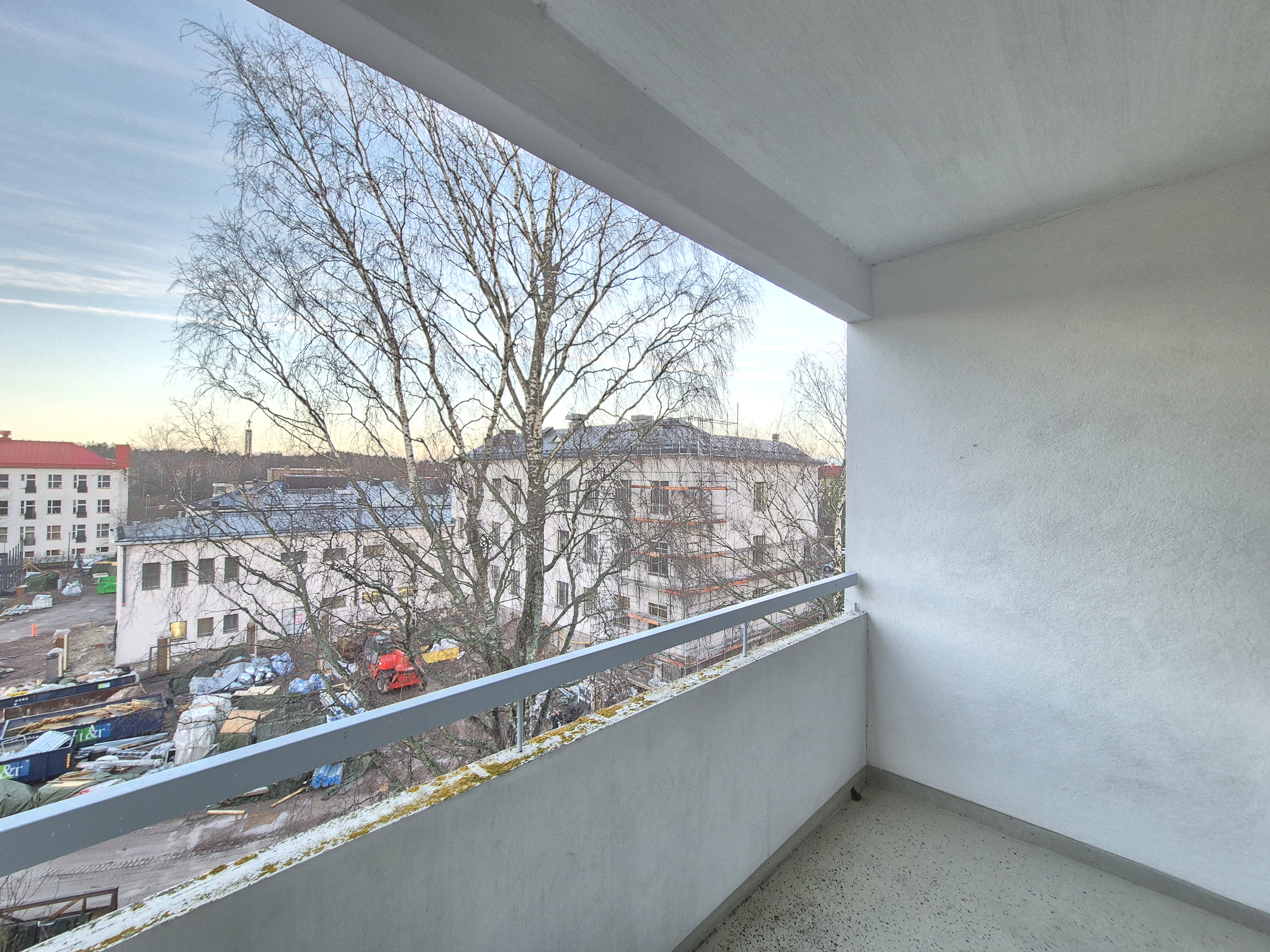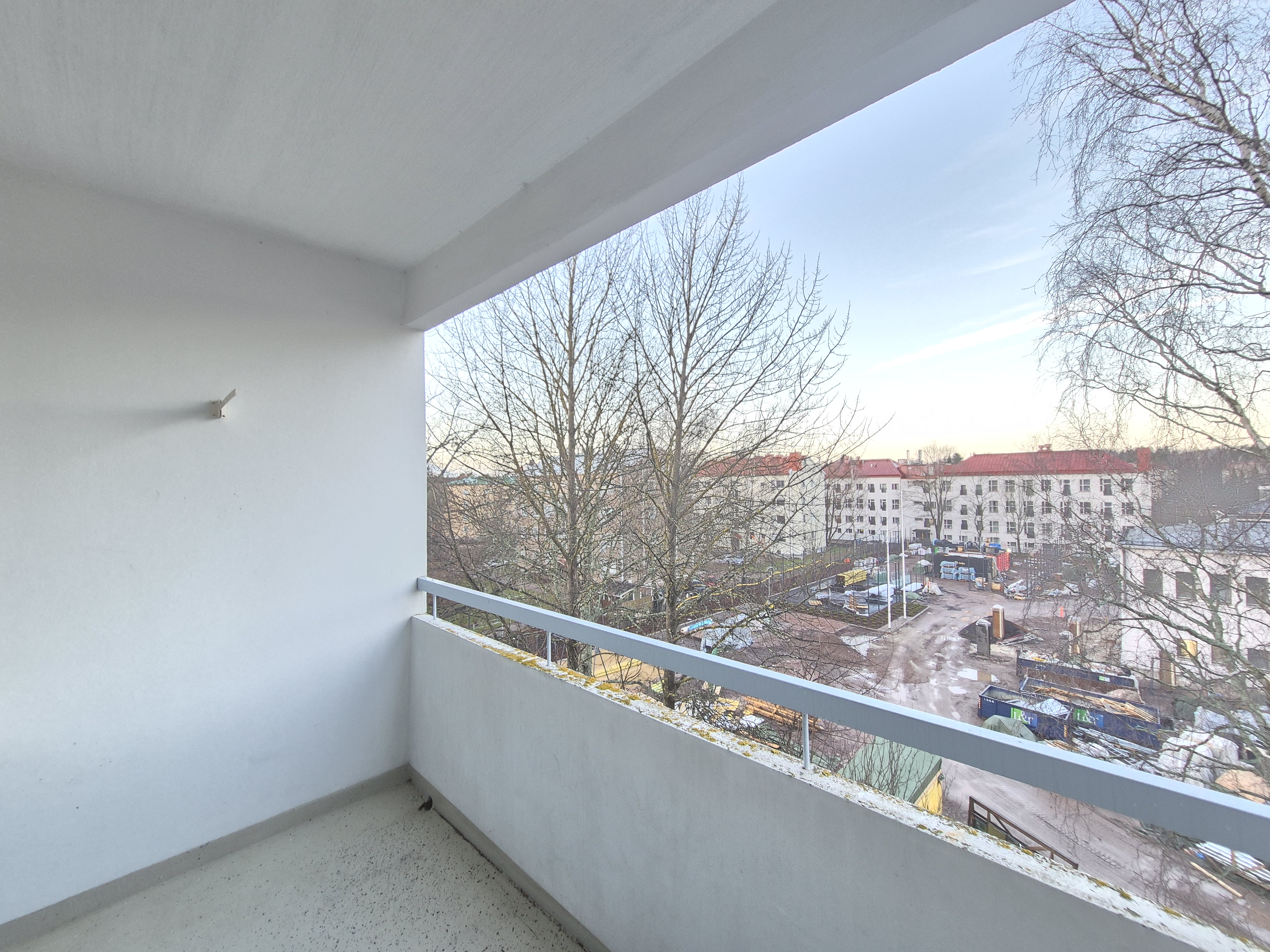4. kerroksen tilava parvekkeellinen kulmahuoneisto. Siistikuntoisessa asunnossa on olohuone, josta käynti parvekkeelle sekä makuuhuone, jossa on kunnolla vaatekaappeja. ikkunallinen pieni keittiö on hyvin varusteltu (pakastin piilossa alakaapissai) ja kylpyhuone on lähes uudenveroinen putkiremontin jäljiltä. Eteisessä myös runsaasti säilytystilaa.