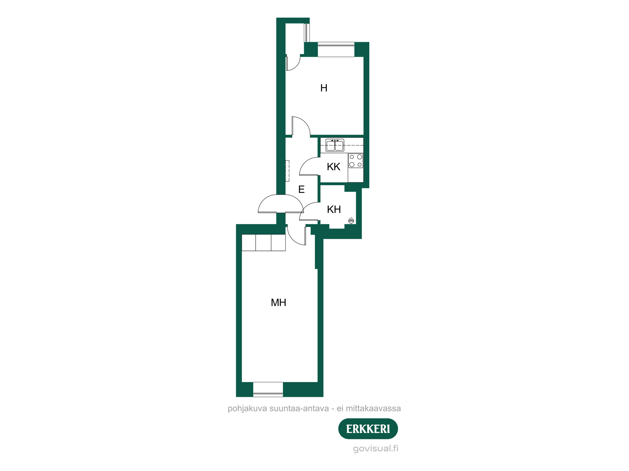Pieni, siistikuntoinen kolmannen kerroksen läpitalon kaksio. Linjasaneerauksen yhteydessä kylpyhuone uusittu, lattiat hiottu sekä seinät maalattu. Keittiö on vaatimaton. Asunnossa erilliset huoneet, joten se sopii erinomaisesti myös yhteisasumiseen.