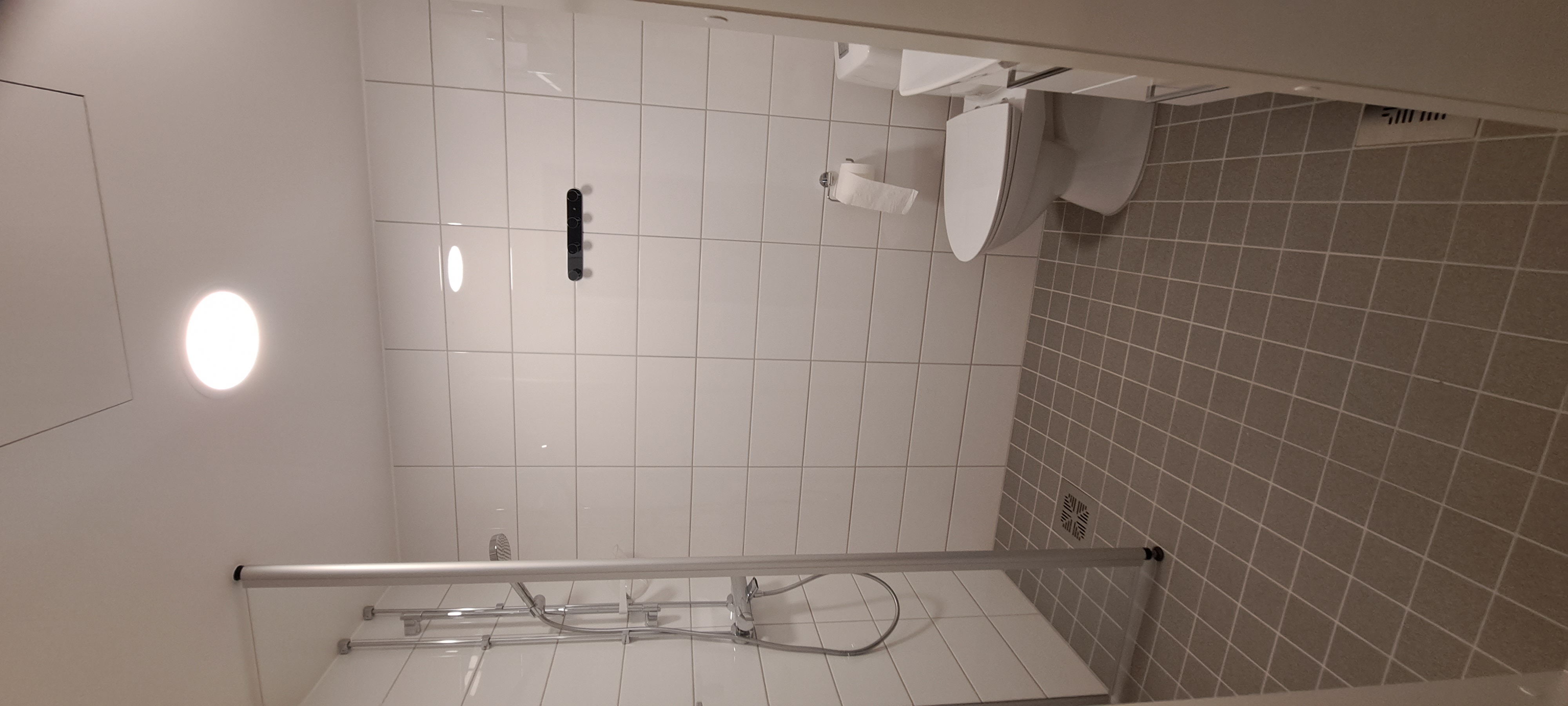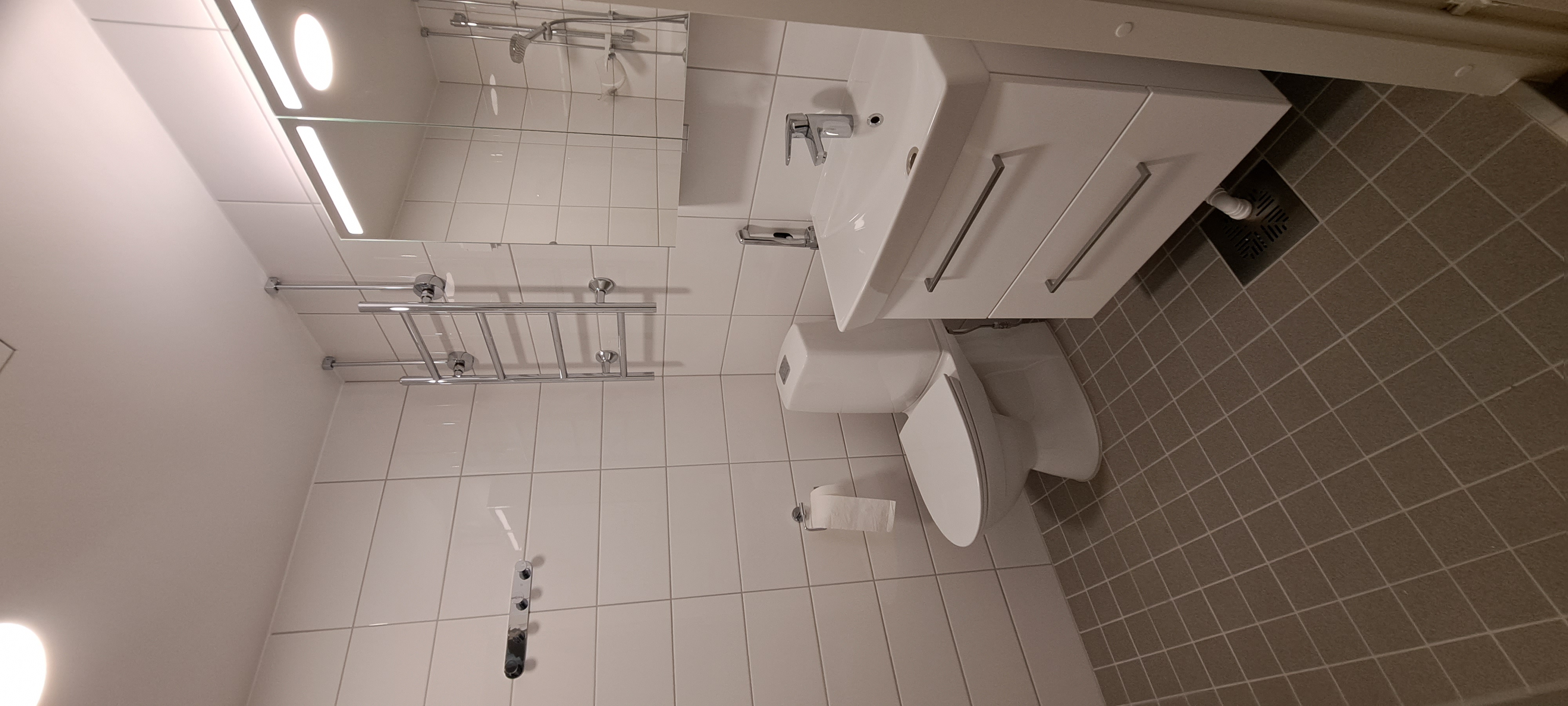 Kylpyhuoneessa on tilavaraus pesukoneelle, ja sen nykyaikaiset pinnat tekevät arjesta sujuvaa.