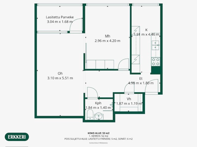 Asunto on hissitalon kolmannessa kerroksessa. Asunnossa on hyvä pohjaratkaisu ja isoista ikkunoista tulee paljon valoa asuntoon.