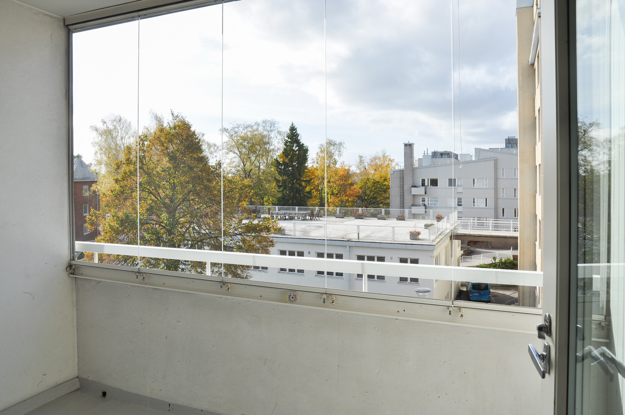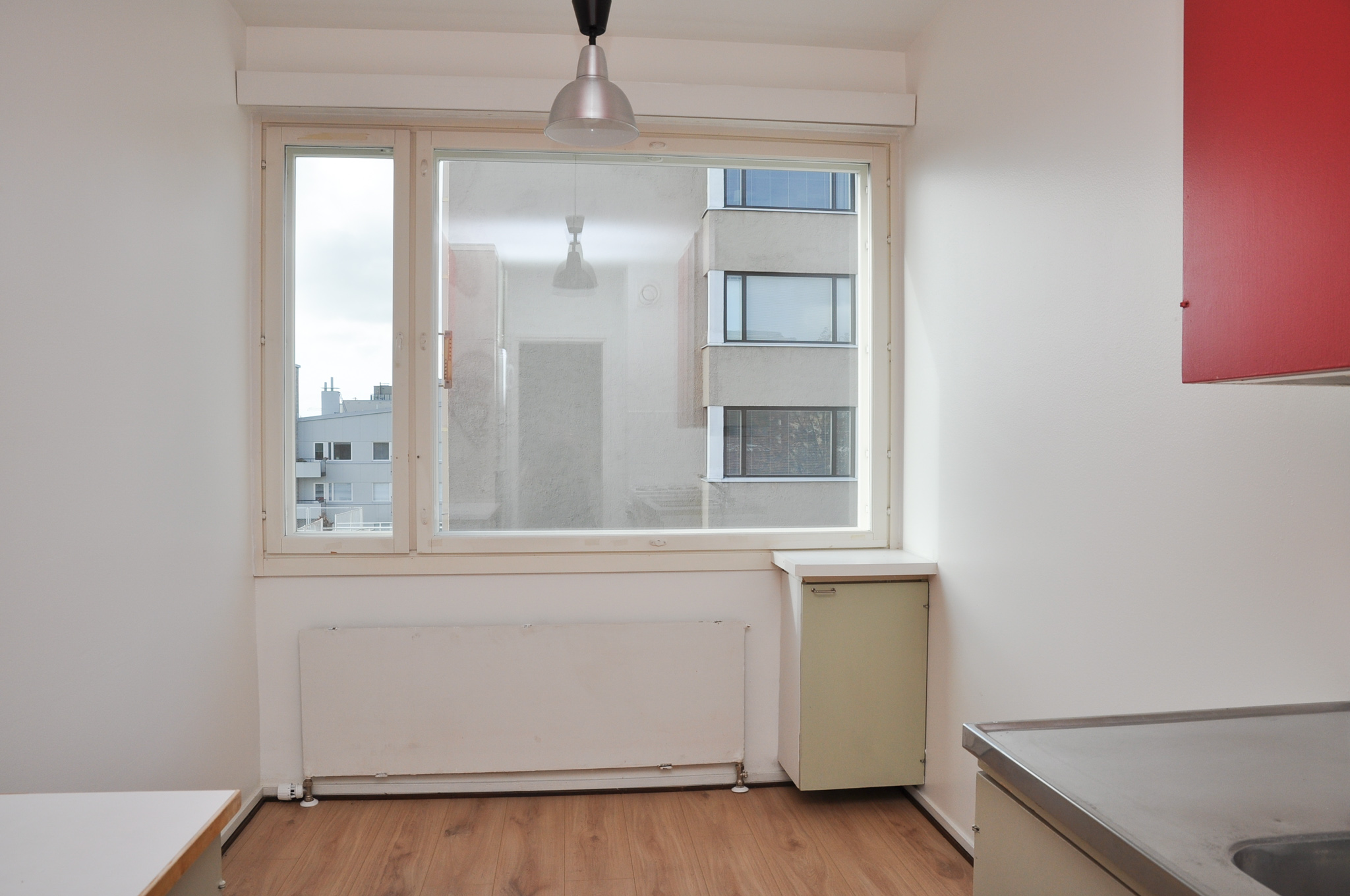 Keittiössä on hyvin säilytystilaa ja tilaa ruokapöydälle keittiön päädyssä. Keittiön kaapistot ovat siistit ja alkuperäiset, niissä on tunnelmaa. Makuuhuoneessa on liukuovi ja kaapistot eivät vie tilaa, koska asunnossa iso vaatehuone sekä kellarikomero käytössä. Taloyhtiössä on isot remontit tehty ja silloin myös uusittu kylpyhuone. Olohuone on avara ja valoisa ja sieltä käynti isolle lasitetulle parvekkeelle missä voit nauttia ilta-auringosta.