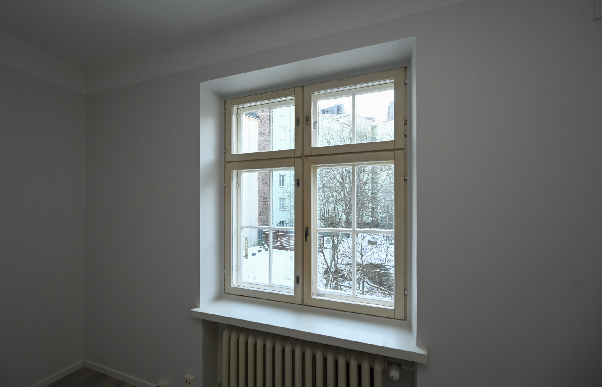 Asunnon sijainti yhdistää erinomaisesti rauhallisuuden ja hyvät kulkuyhteydet – palvelut ja liikenneyhteydet ovat lähellä, mutta sisäpihan ansiosta liikenteen äänet eivät kantaudu asuntoon.