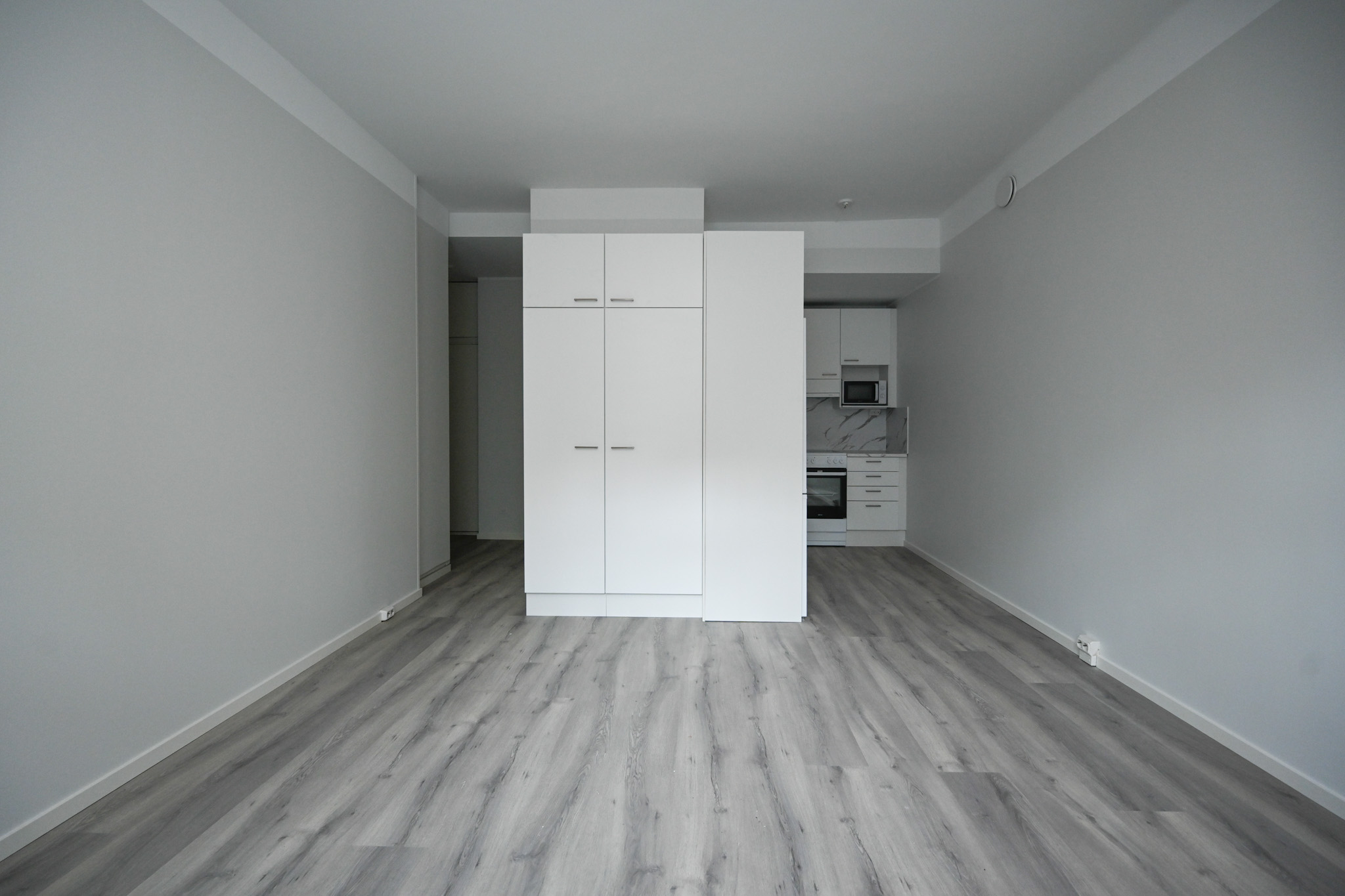 Tervetuloa tutustumaan tähän kauniiseen ja raikkaaseen yksiöön, joka sijaitsee rauhallisen sisäpihan puolella hissillisessä talossa. Asunto on juuri pintaremontoitu: seinät on maalattu, lattiat uusittu ja keittiö remontoitu moderniksi kokonaisuudeksi nykyaikaisilla kodinkoneilla.