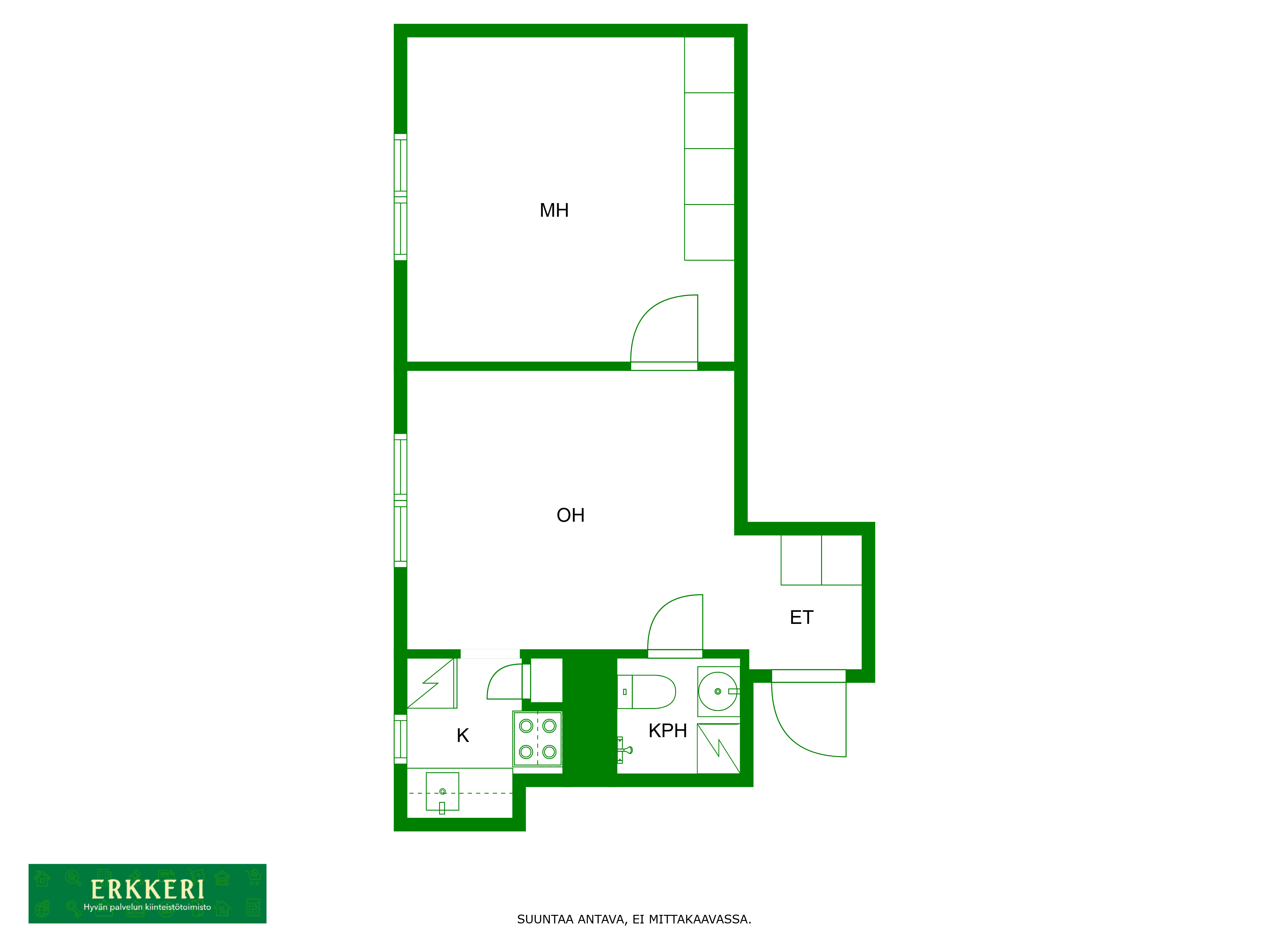 Asunto on hissitalon 6.kerroksessa. Asunnon pohjaratkaisu on selkeä ja hyvä. Kompakti keittiökomero. Asunnossa on hyvät kaapistot makuuhuoneessa sekä eteisessä. Kylpyhuoneessa on paikka pyykinpesukoneelle. Asunnossa on kauniit isot ikkunat mistä tulee mukavasti luonnonvaloa asuntoon ja toki ihanat syvät ikkunalaudat.