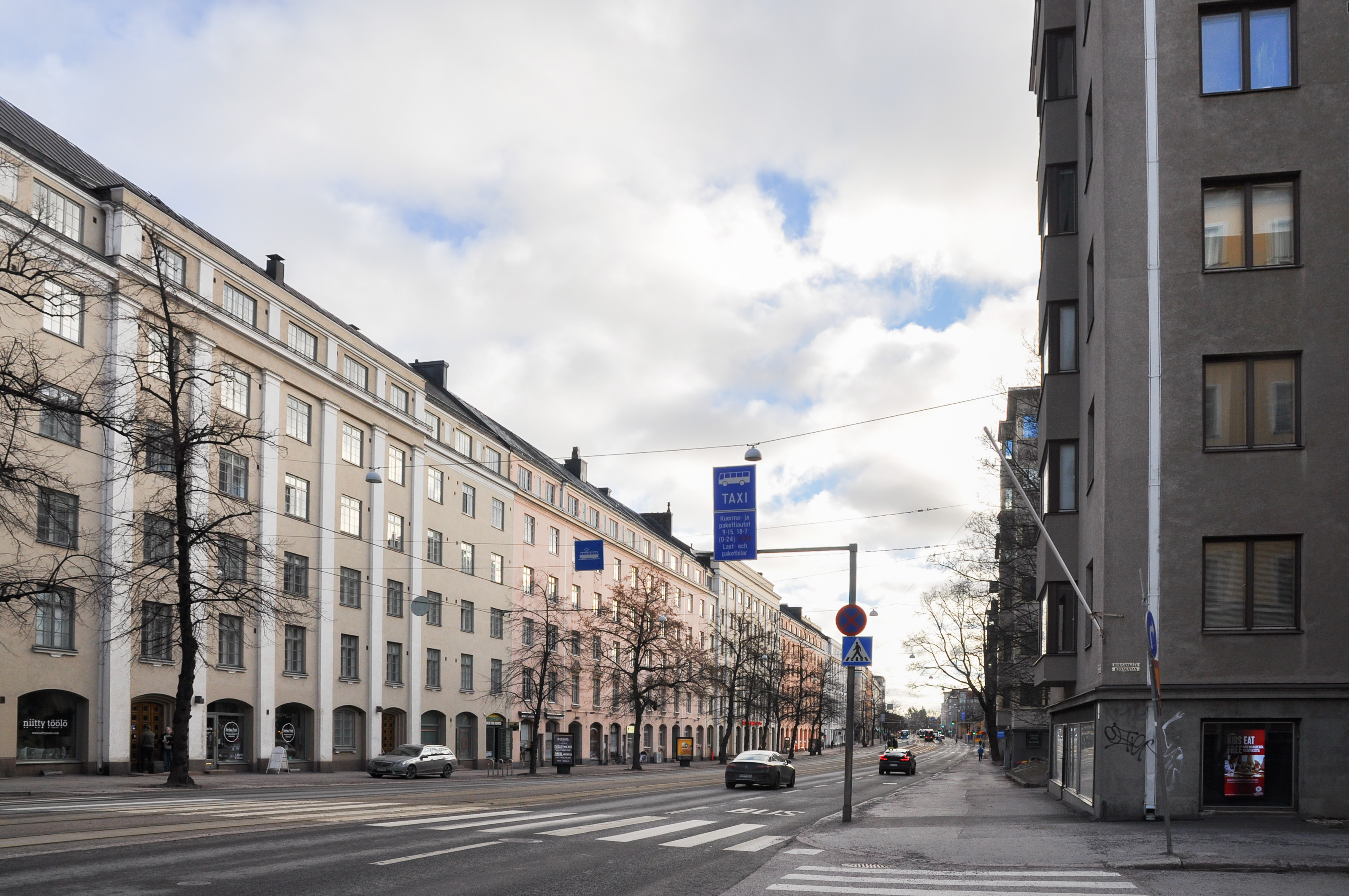 Sijainti on huippu, raitiovaunu ja bussit kulkevat aivan kotiovelta ja lähikauppa löytyy kodin kulmalta.