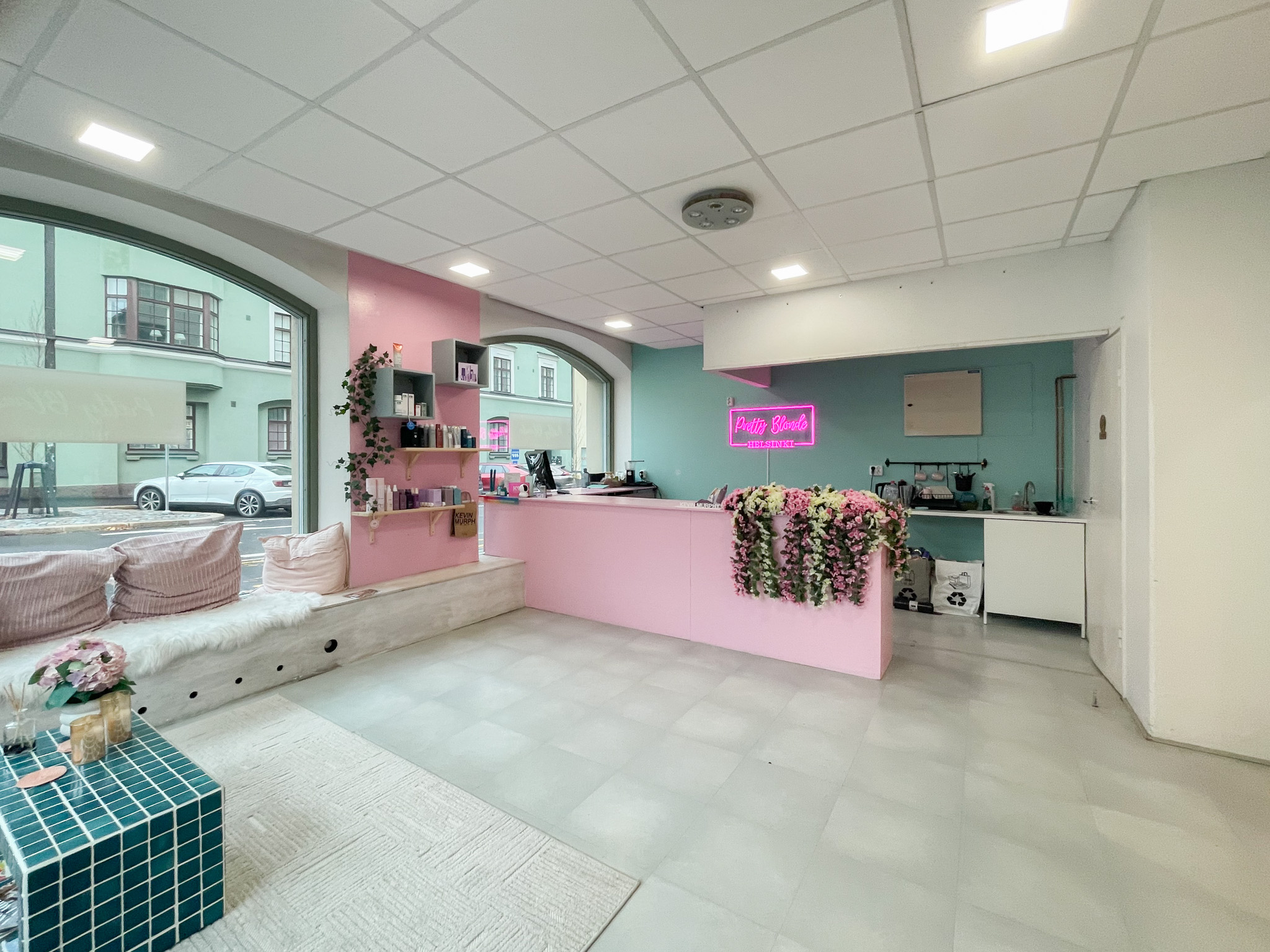 Tilassa on suuret näyteikkunat suoraan Mannerheimintielle, jotka tuovat runsaasti luonnonvaloa ja tarjoavat näkyvyyttä ohikulkijoille. Selkeä pohjaratkaisu ja korkea tila luovat avaran vaikutelman.