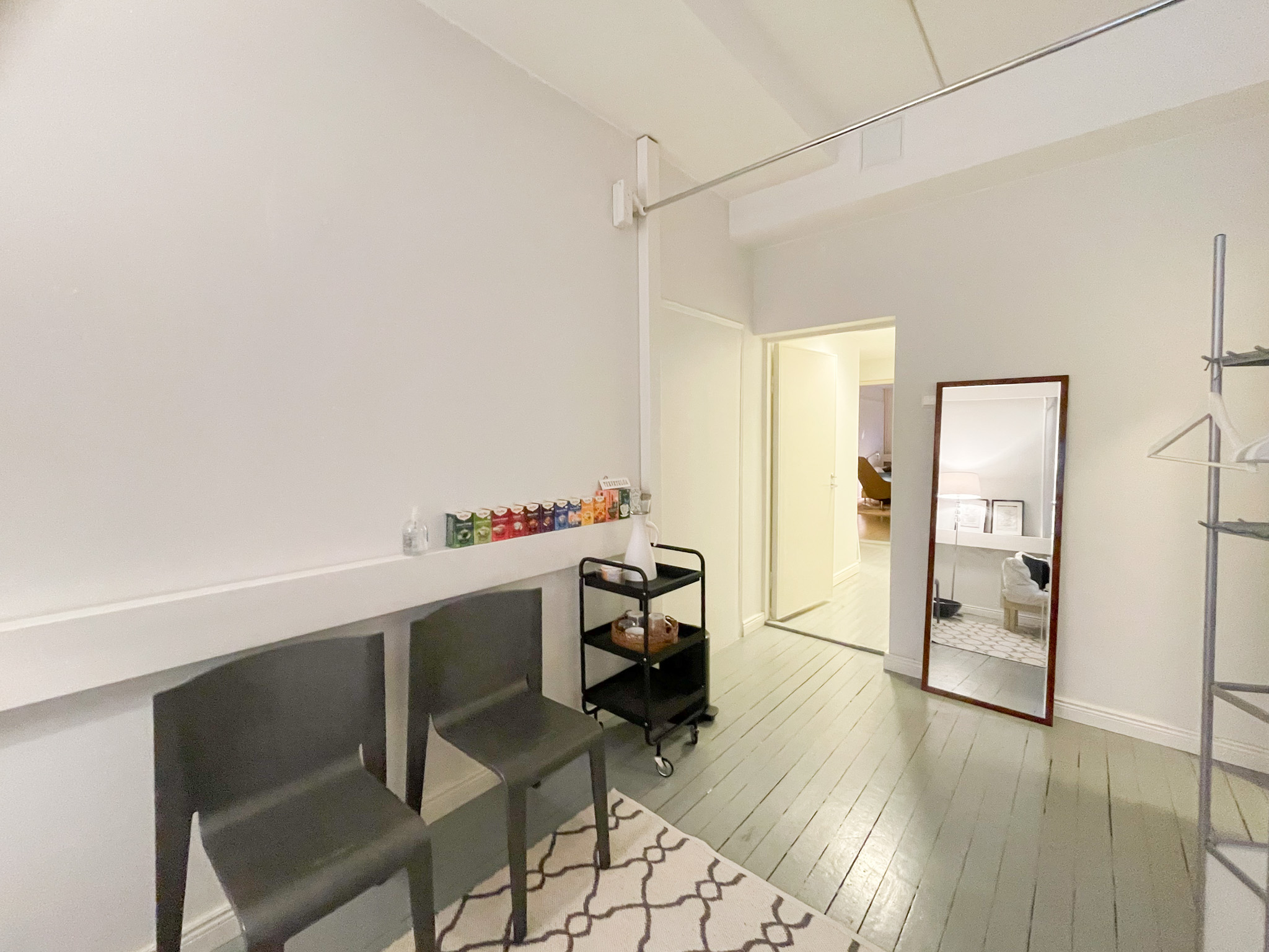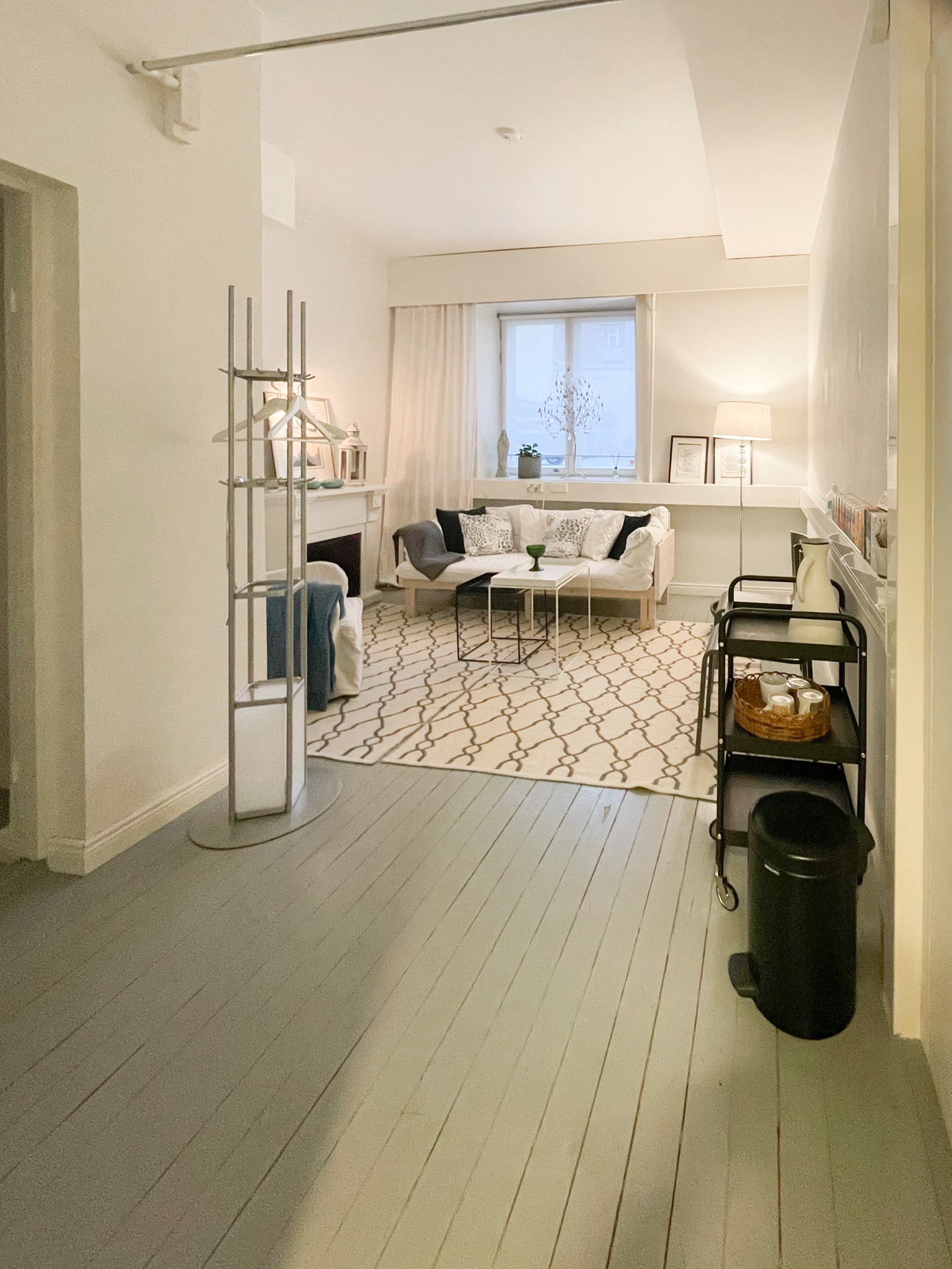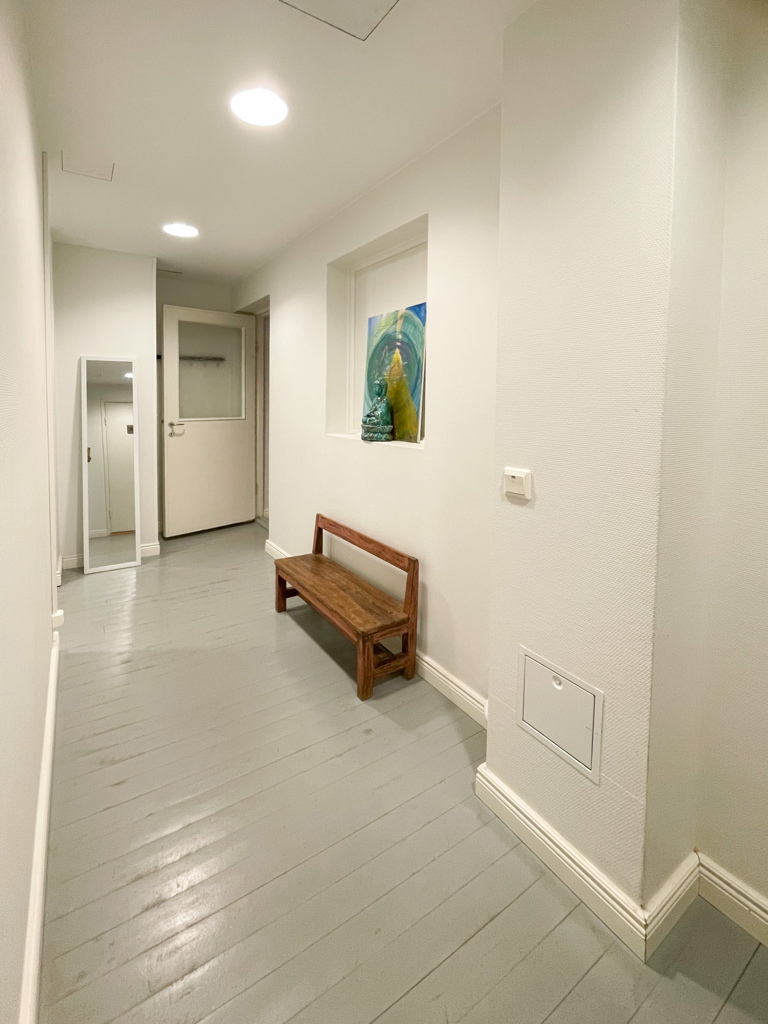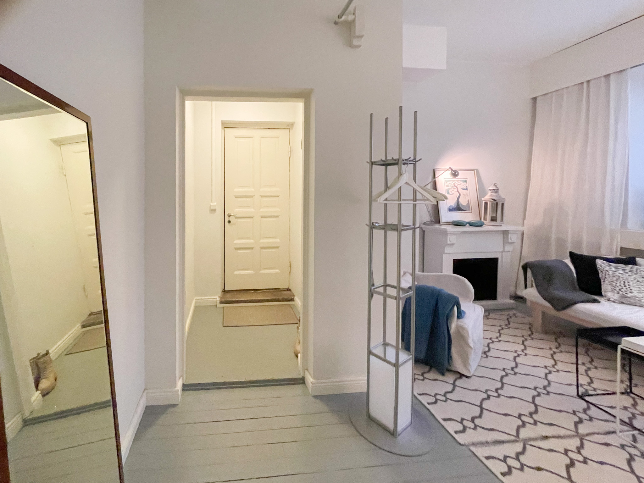 Sisäänkäynti tapahtuu rappukäytävän kautta portin sisäpuolelta, mikä tuo tilaan rauhaa ja yksityisyyttä.