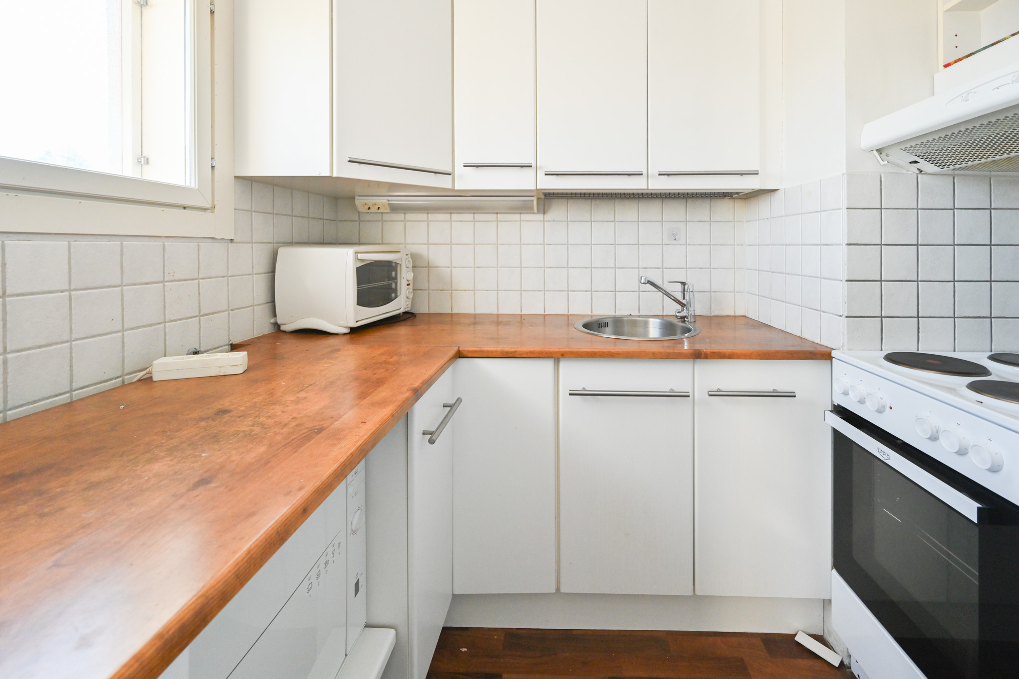 Asunnossa on hyvä ja selkeä pohjaratkaisu. Sängylle paikka alkovissa ja näin muulle kalustukselle jää hyvin tilaa. Keittiössä on hyvin säilytys- ja laskutilaa. Kylpyhuoneessa paikka pyykinpesukoneelle.